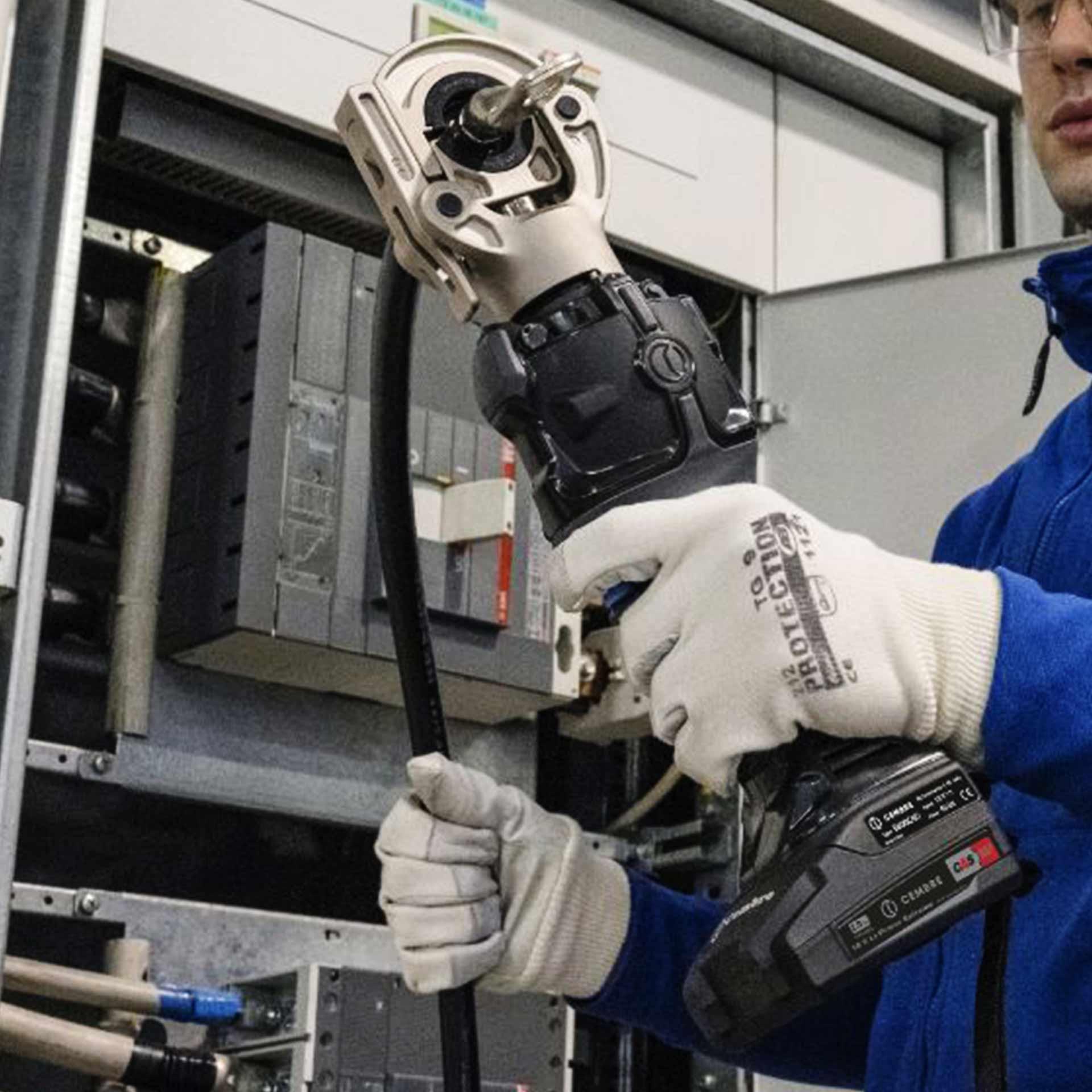 Die B600CND von CEMBRE ist das erste einer neuen Generation von tragbaren Akkuwerkzeugen, gekennzeichnet durch eine “Bi-linear” Bauform.Sie ist ausgestattet mit einem intelligenten automatischen Rücklauf am Ende des Zyklus (Smart Release). Die B600CND eignet sich zum Verpressen von Kabelschuhen und Verbindern bis zu 300 mm². Ein neuer Li-Ion Hochleistungsakku 18V - 2.0 Ah, ermöglicht ein längeres unabhängiges Arbeiten. Das Werkzeug ist außerdem mit einem Überdrucksensor und einem Sicherheitsventil ausgestattet: Der Sensor garantiert eine größere Wiederholgenauigkeit des Maximaldrucks, das Ventil hingegen, stellt einen wichtigen Schutz für den Anwender dar. Das EPS garantiert die Präzision, prüft den aktuellen Druckwert und informiert den Anwender über mögliche Fehler (EPS). Über das OLED-Display können verschiedene Parameter angezeigt werden: • Druck und Kraft des Arbeitszyklus, zur Überprüfung einer korrekten Ausführung der Verpressung • Akkustatus, • Allgemeine Daten zum Betrieb, Anzahl der ausgeführten und bis zur nächsten empfohlenen Wartung möglichen Arbeitszyklen. Ein neues Design, geringeres Gewicht und ideale Schwerpunktlage, sorgen für eine komfortablere Handhabung während des Einsatzes. Während die aus zwei verschiedenen Materialien bestehenden Kunststoffhalbschalen, mit ihren robusten Strukturelementen entsprechenden mechanischen Schutz unter allen Einsatzbedingungen garantieren, gewährleisten sie mit ihren Gummieinsätzen höhere Sicherheit und komfortablere Handhabung. Dank geräuscharmen Betriebes, LED-Ausleuchtung des Arbeitsbereiches und minimale Vibrationen, wird das Werkzeug bei der Verwendung noch komfortabler. Die Betriebsparameter der ausgeführten Arbeitszyklen (max. 200.000), werden auf der integrierten Speicherkarte gespeichert und können über eine USB-Schnittstelle, auf einen Computer übertragen werden (SMARTOOL Technology). Umgebungstemperatur: -15 bis +50 ° C