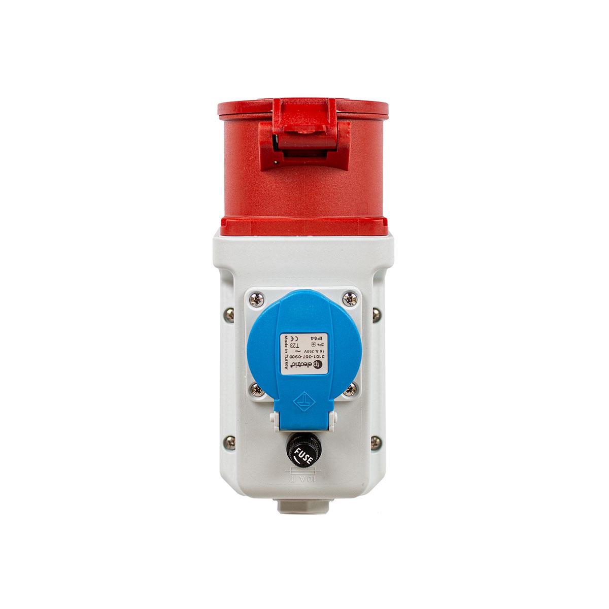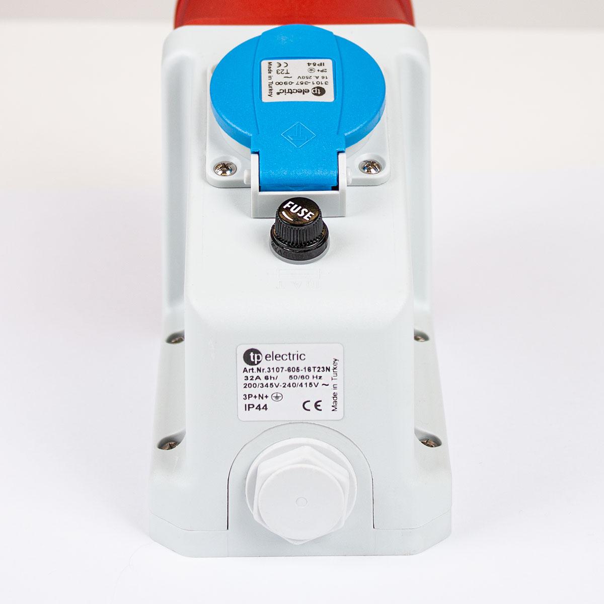 Produktinformationen "AP-Steckdose CEE 32A 5P 6h, 3PNE 400V mit T23 Steckdose 10A abgesichert, vernickelte Kontakte"