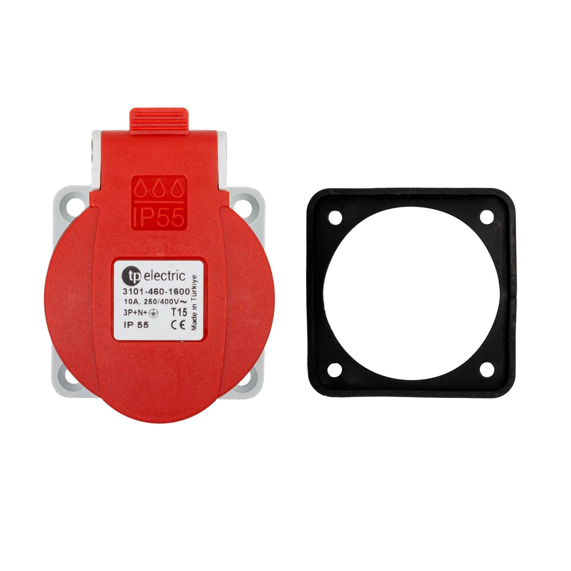 Produktinformationen "Einbausteckdose T15 10A 5P, IP55, 3PNE 400/230V, vernickelte Kontakte, Schraubanschluss, SN 441011"