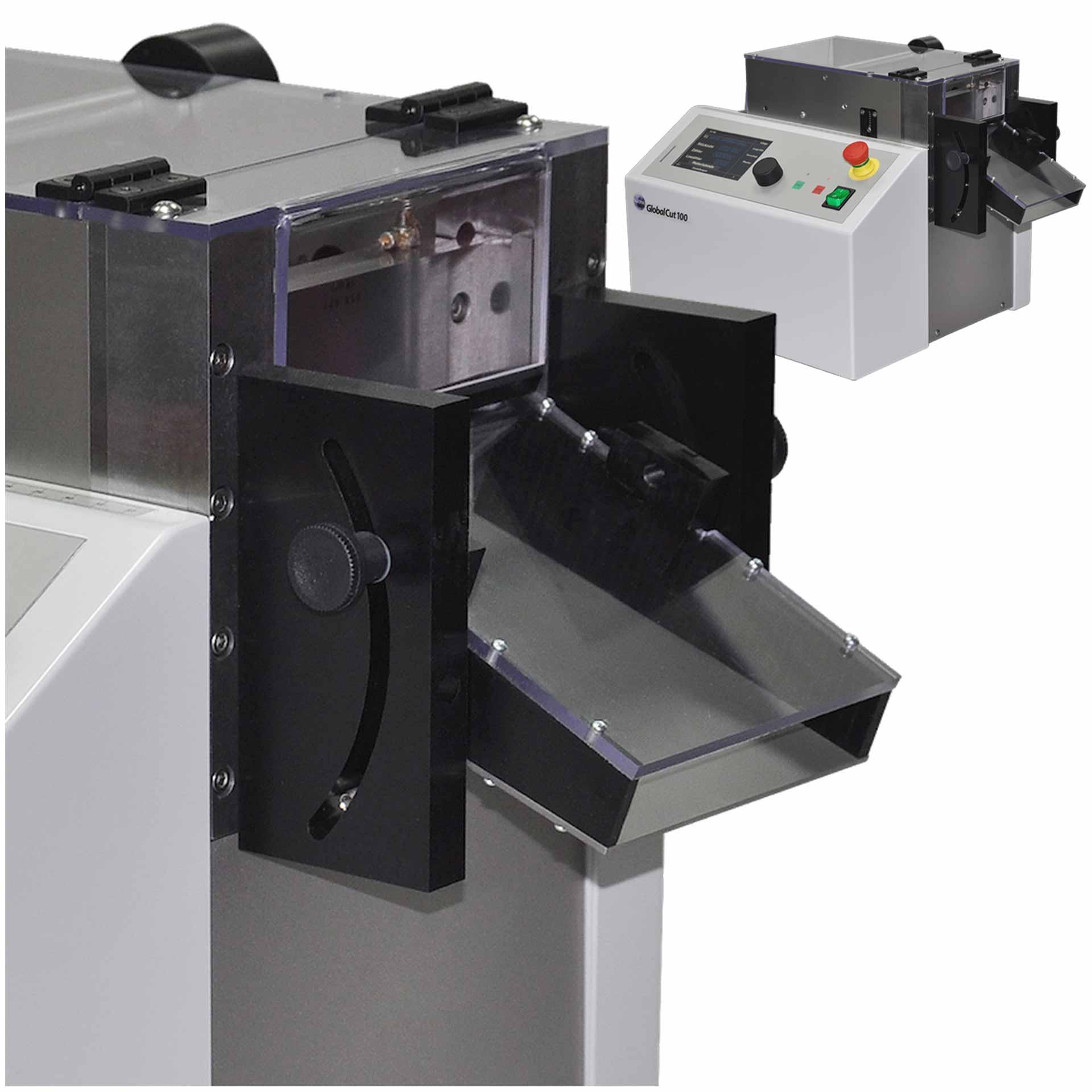 Universal cutting machine The GlobalCut 100 Vario universal cutting machine is our specialist for hoses, flat ribbon cables and stranded wires. After carefully reading the operating instructions and strictly observing the safety regulations described there, the machine can be operated by anyone without lengthy familiarisation. Depending on the country of use, the language of the display should be determined first. The GlobalCut 100 Vario can be used for more than just wire processing. Many customers from other branches of industry have found that our cutting machines are excellent for cutting other materials. For example, the machine is used for processing unrollable materials made of textiles, leather, paper, cardboard, plastic, foam, rubber and a large number of other diverse materials. This machine is always the right choice.