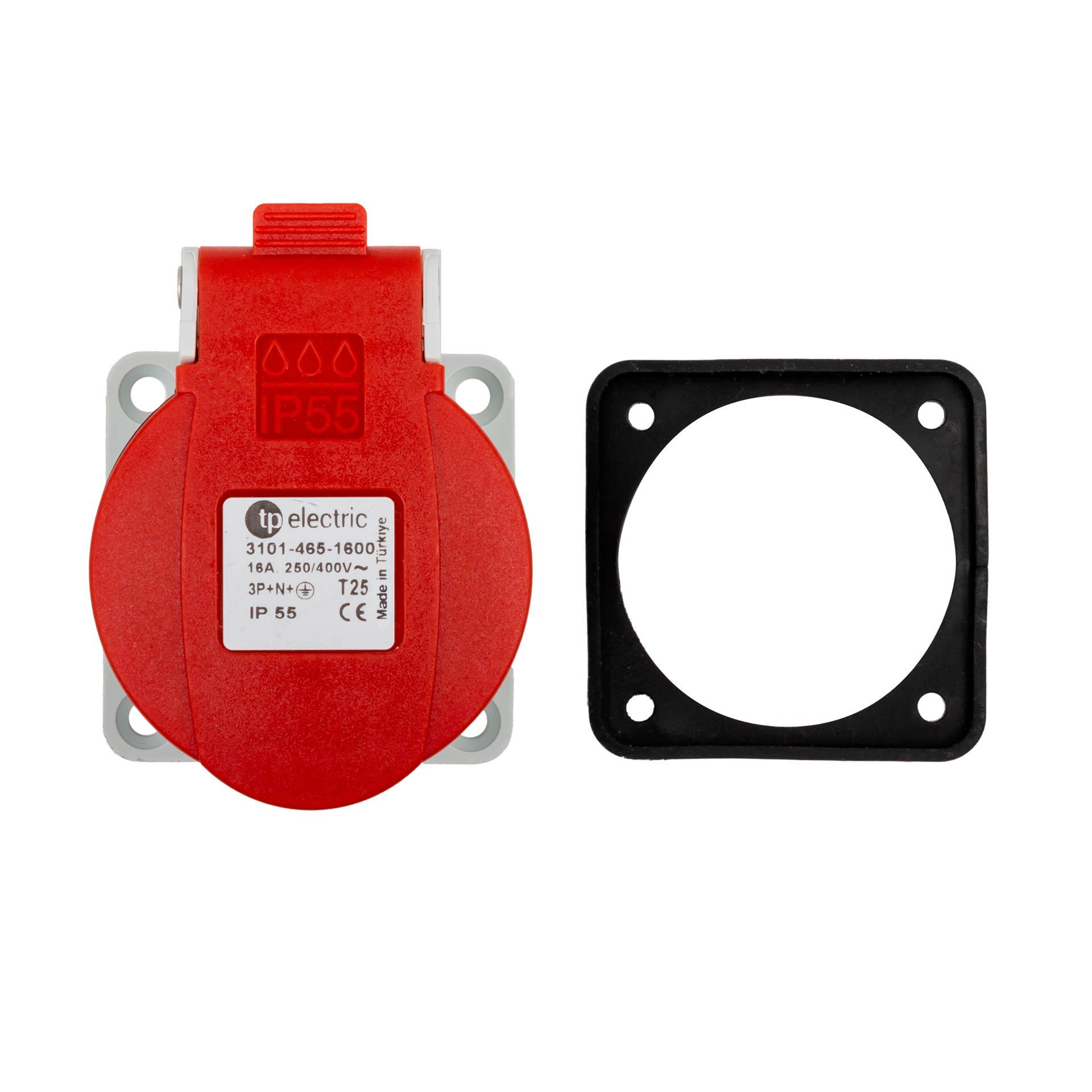 Product information "Built-in socket outlet T25 16A 5P, IP55, 3PNE 400/230V, nickel-plated contacts, screw connection, SN 441011"