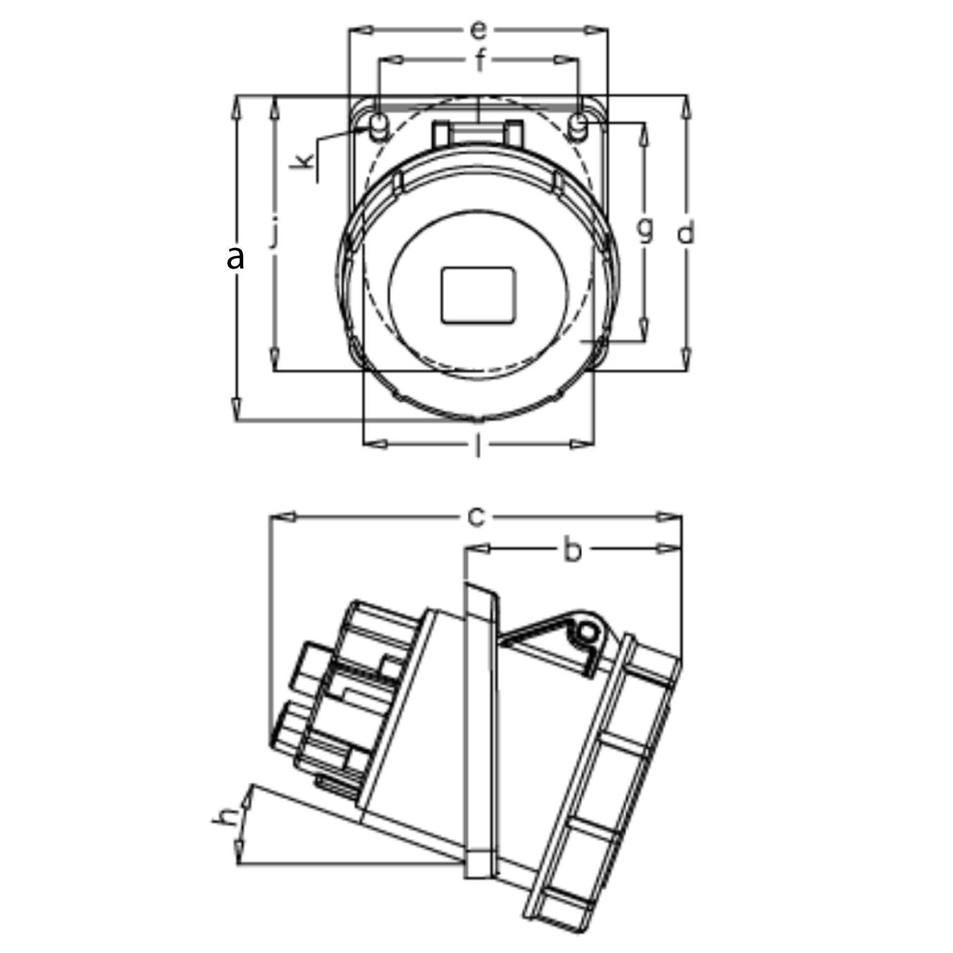 Product information "CEE socket outlet 63A 5P 6h, 3PNE 400V, angled design, nickel-plated contacts, screw terminal"