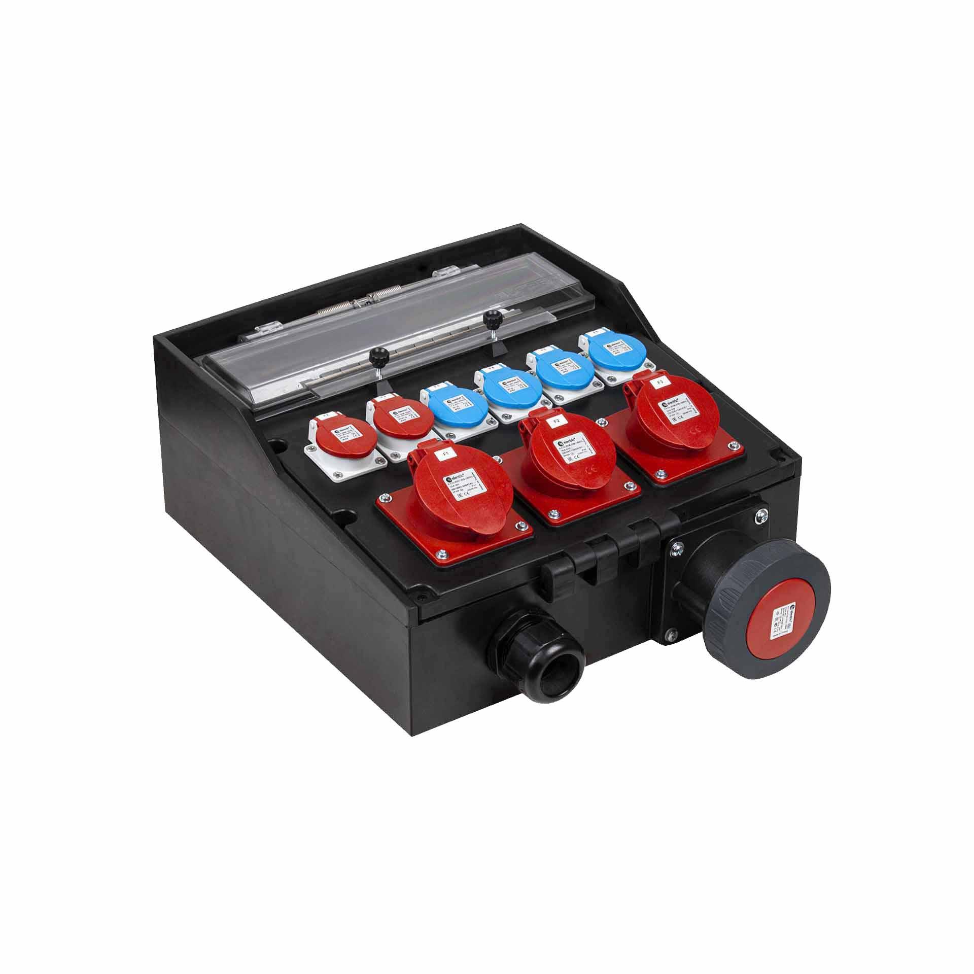 Our hard rubber power distributors are ideal for both indoor and outdoor use. For industrial, commercial, trade and public areas. Compliance with all current regulations and standards (IEC EN-61439). The distribution boards can also be configured according to your individual requirements.
