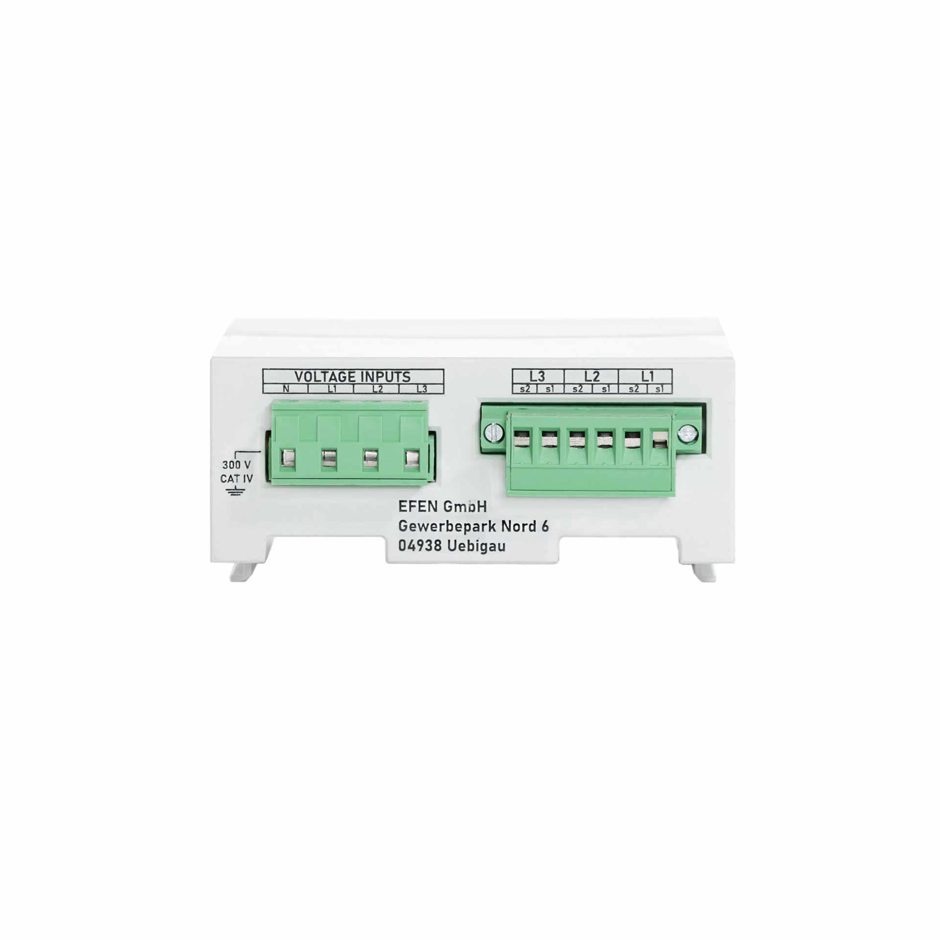 The MEM 1 has 3 voltage inputs. The phase voltages are measured via terminals N, L1, L2 and L3. The fuse protection for the voltage measurement is integrated in the MEM 1 and designed in CAT IV.