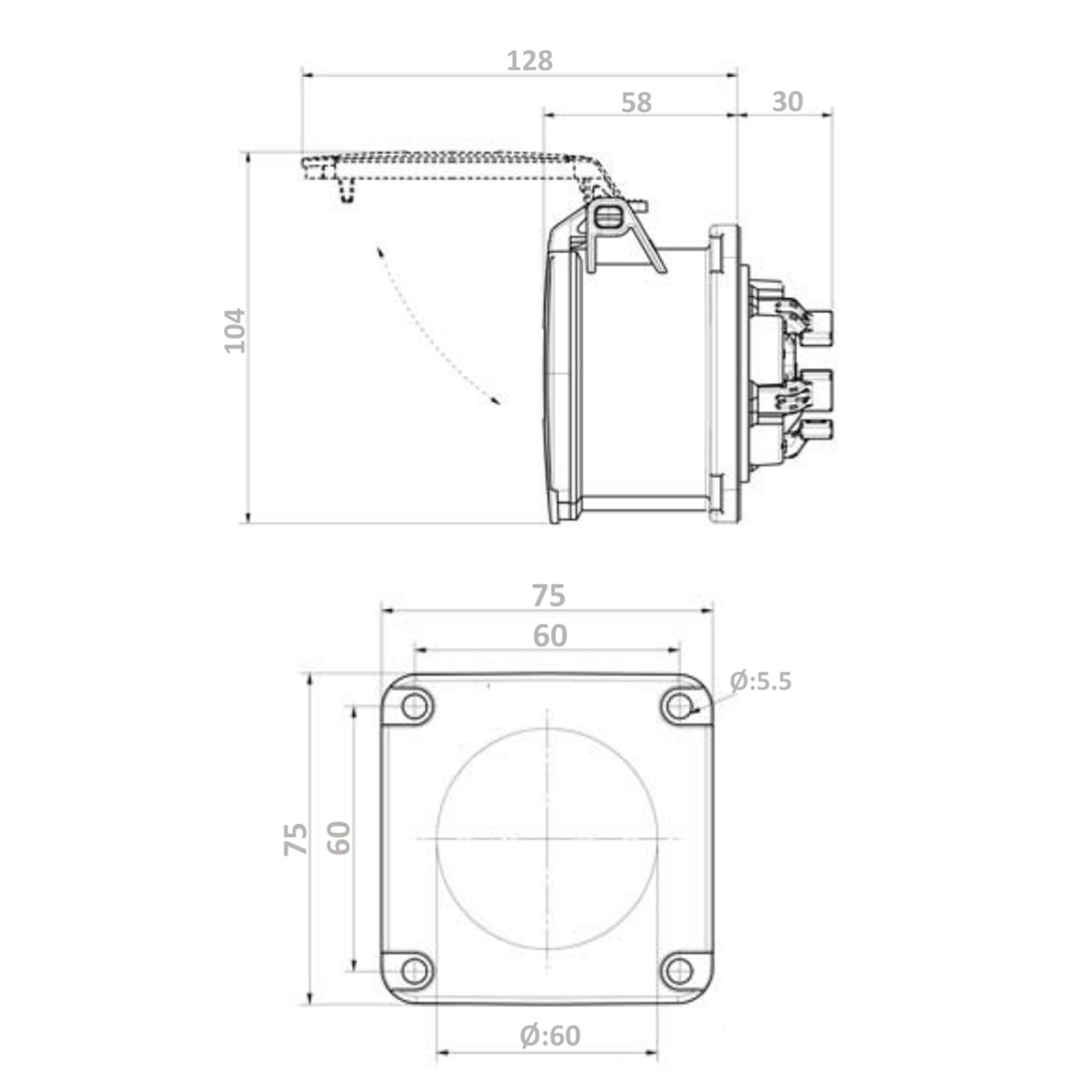 Accessories for Quick CEE socket outlet 32A 5P 6h, 3PNE 400V, straight version, nickel-plated contacts, QC system