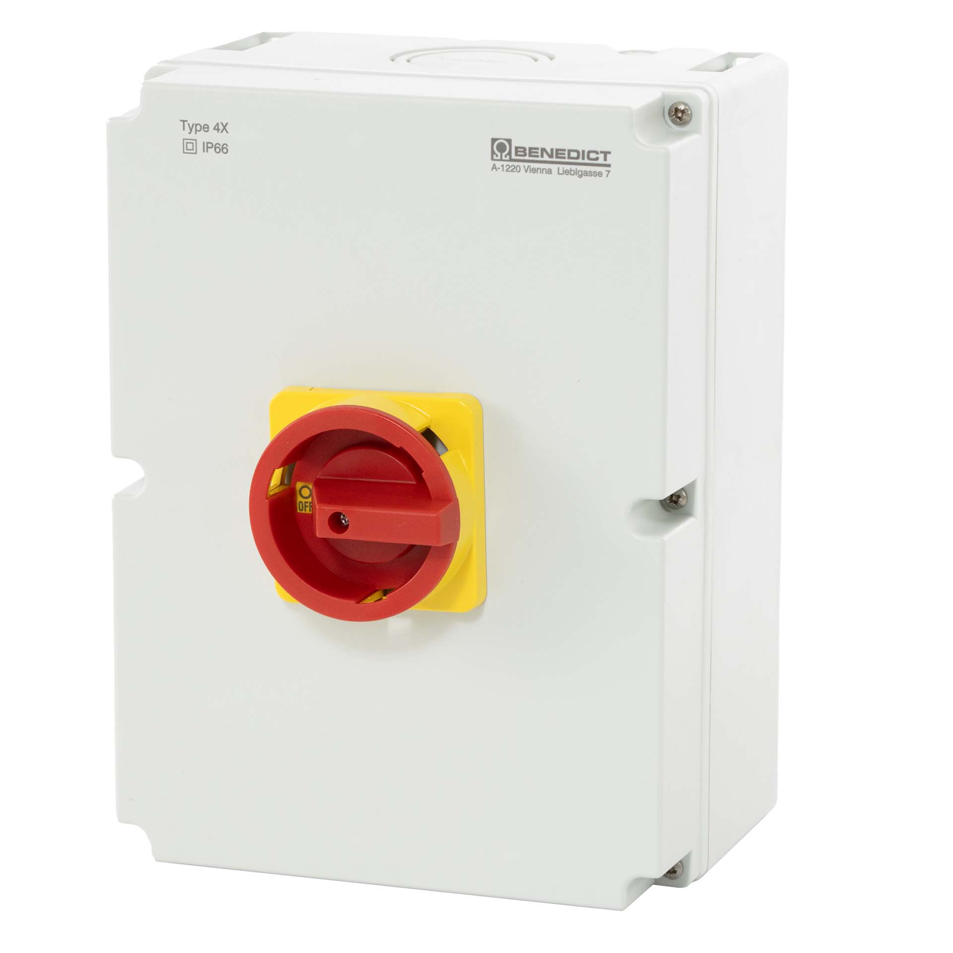 Product information "Surface-mounted main switch EMERGENCY STOP 4-pole 80A, PF3 housing, M50, 22 kW"