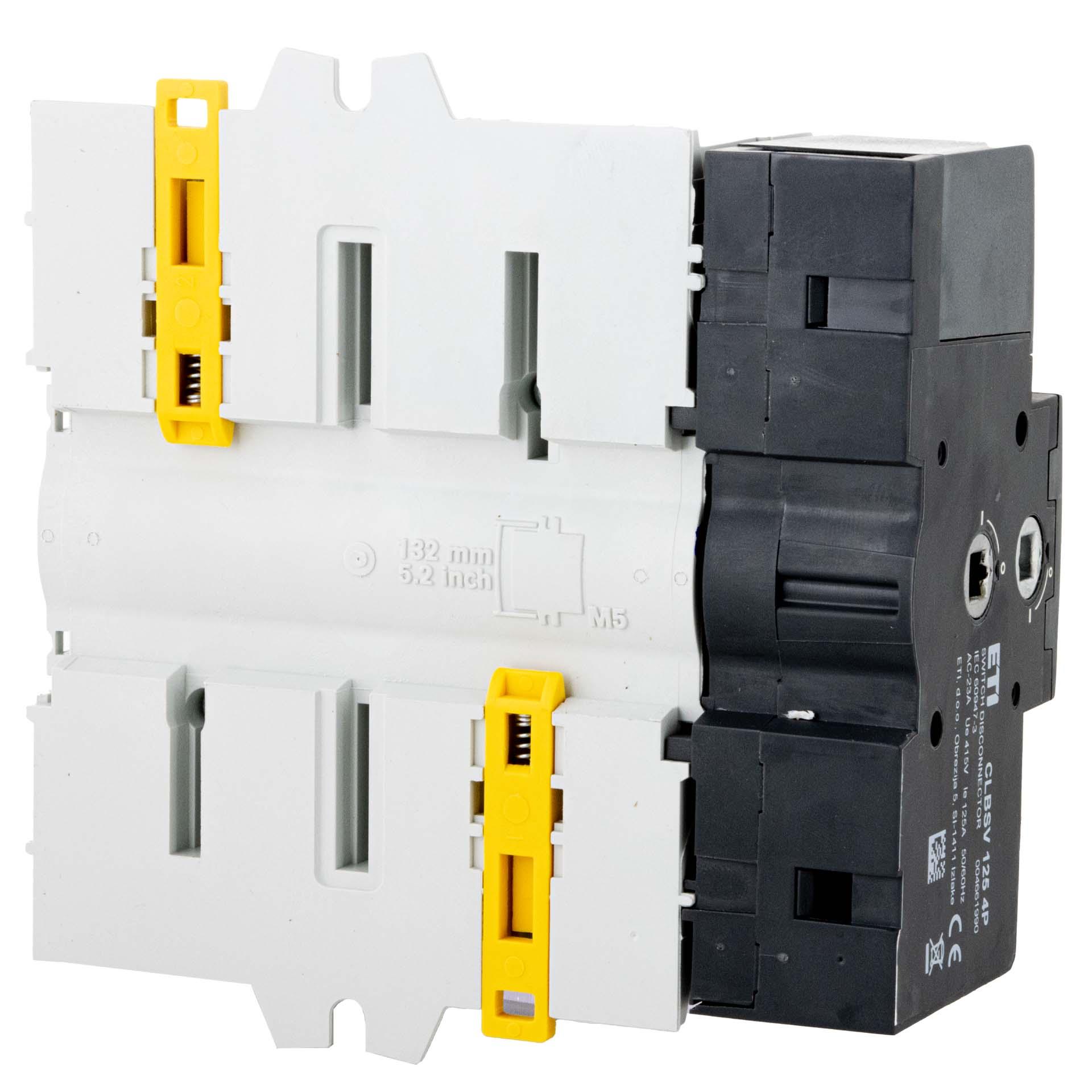 Load-break switch, also known colloquially as a main switch or inspection switch. This is used to switch a main current on and off. The CLBS series is mainly suitable for DIN rail mounting. When used with our aluminium profiles, we recommend article 12606, 12640, 12626 or 12648.