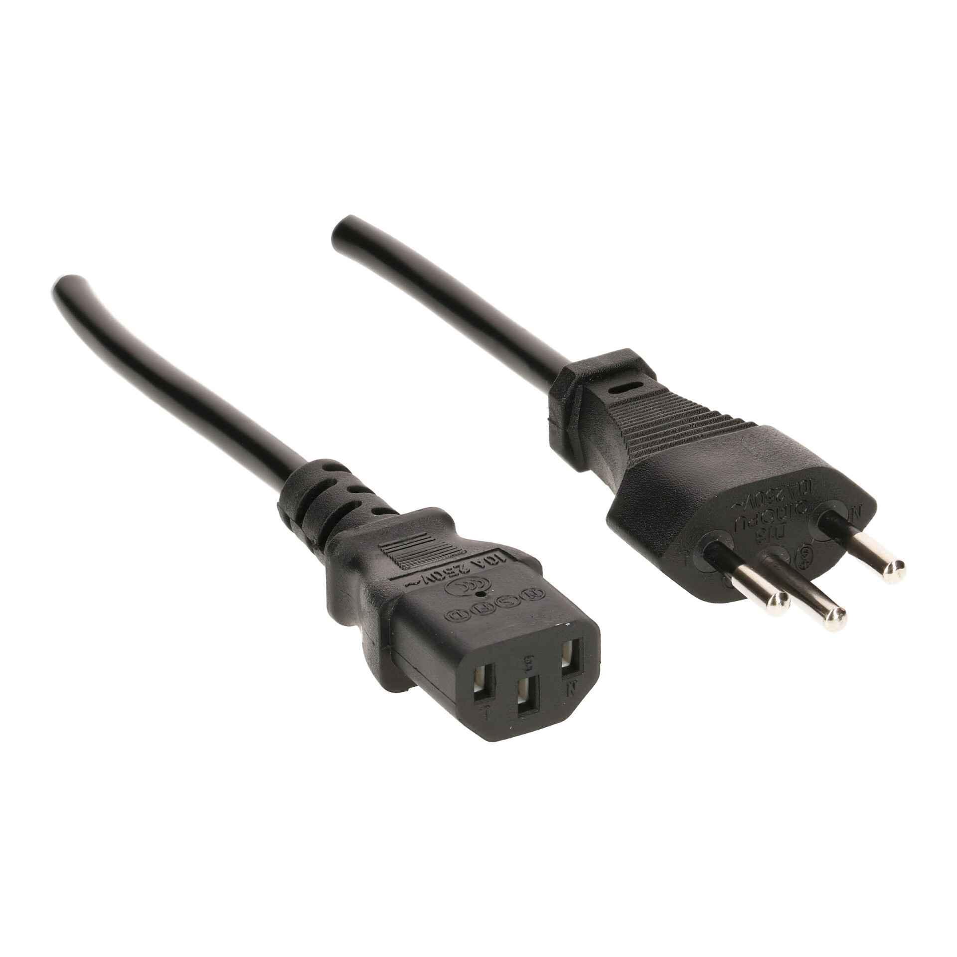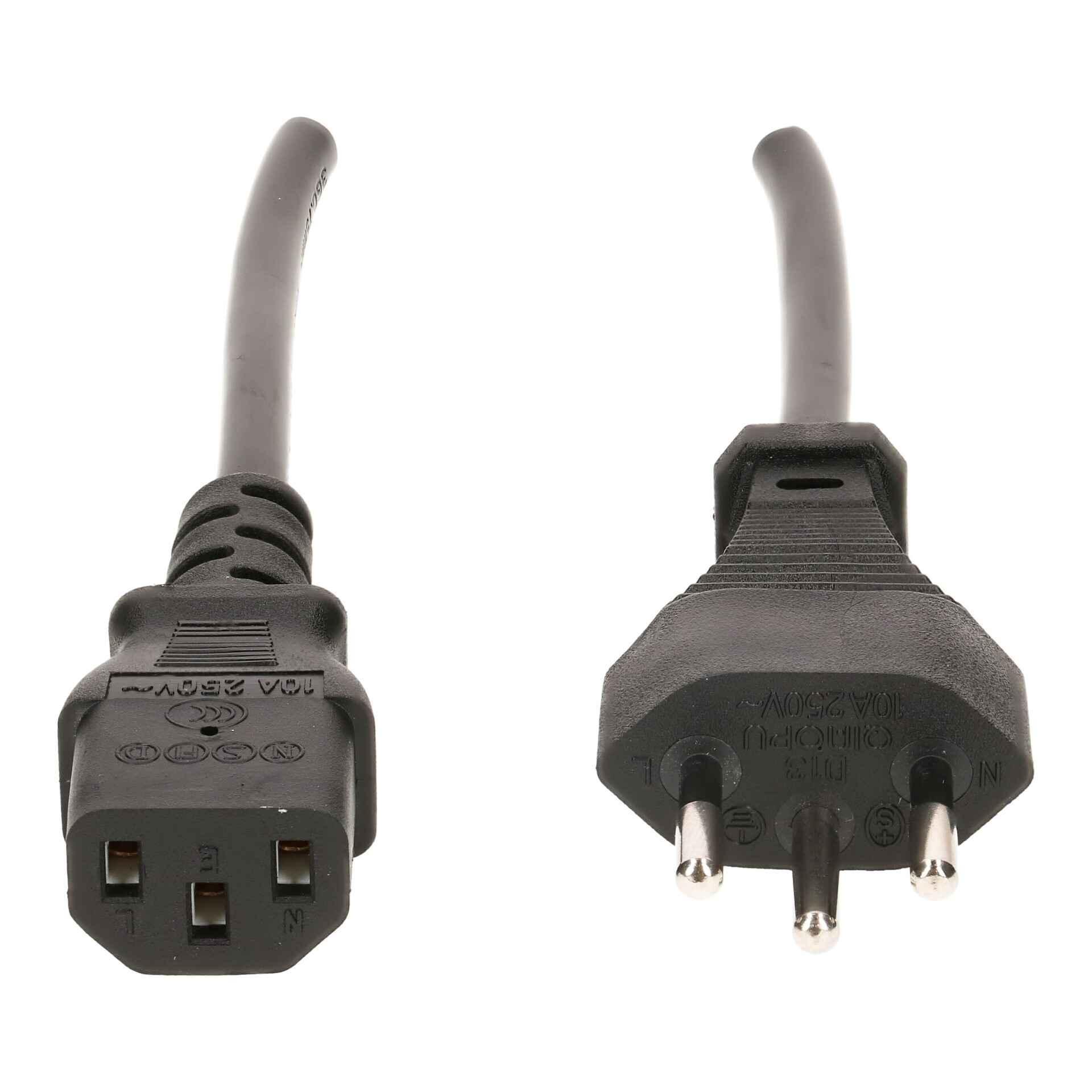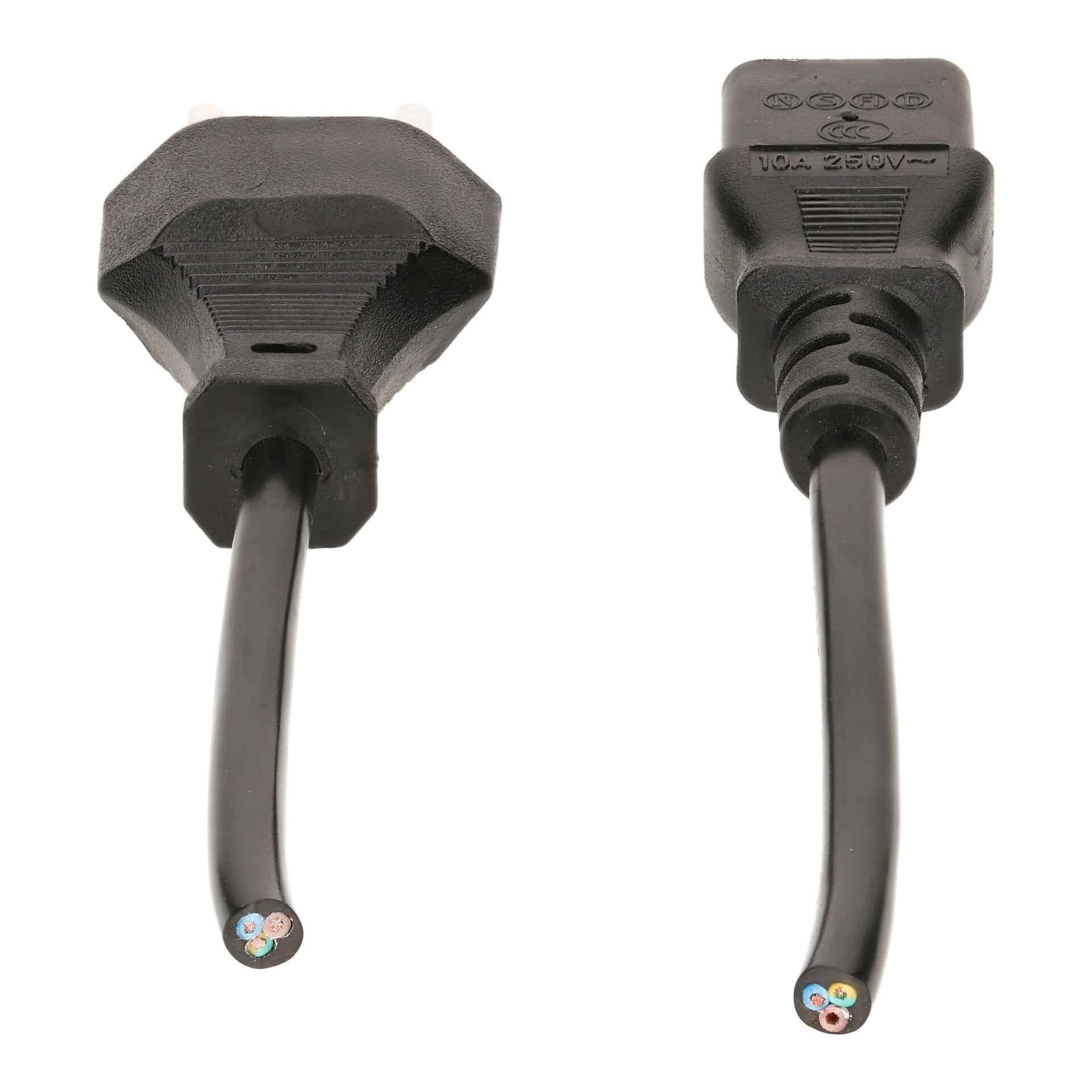 TD appliance cable H05VV-F3G0.75 1m black / side 1: moulded type 12 plug / side 2: moulded C13 coupling