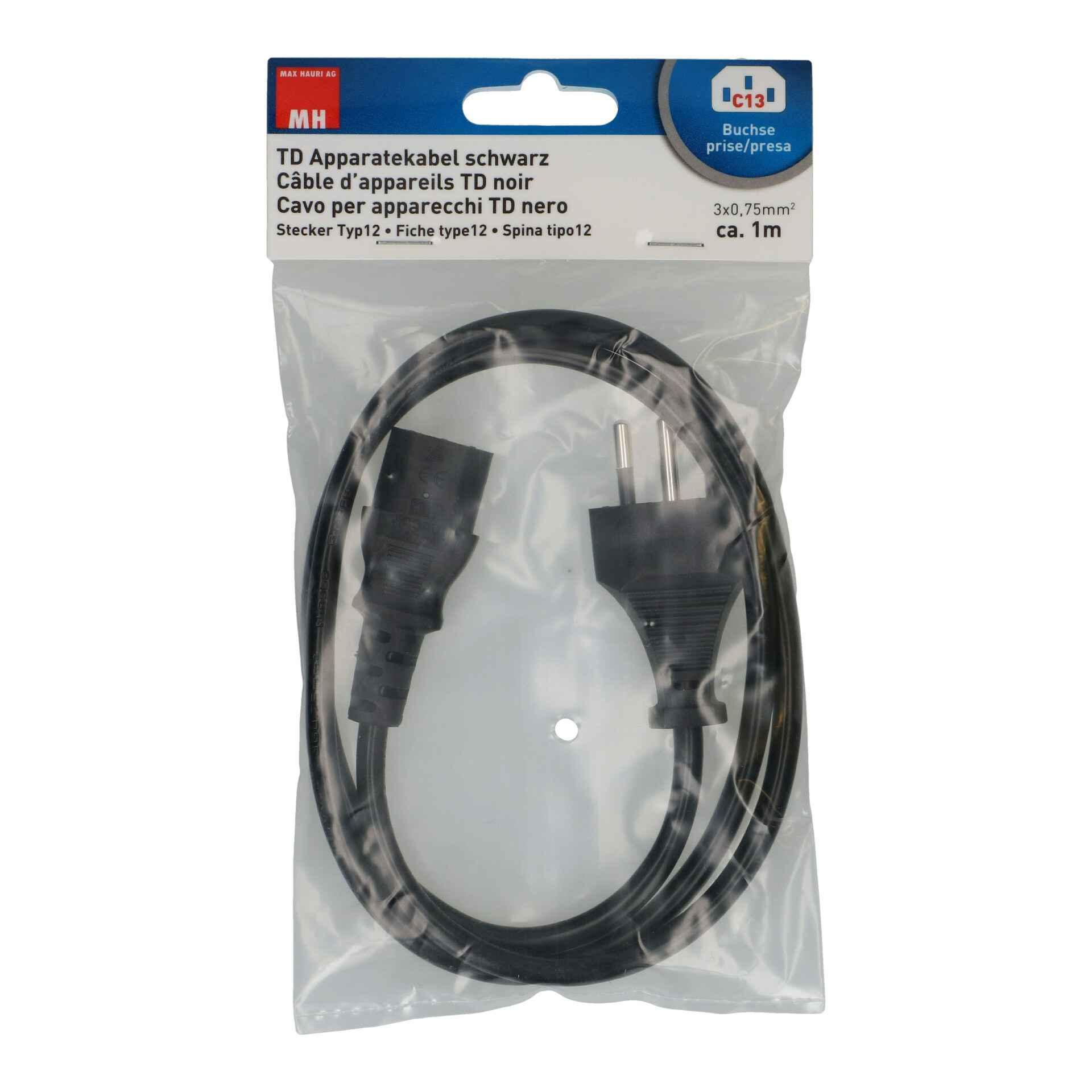Product information "TD appliance cable H05VV-F3G0.75 1m black T12/C13"
