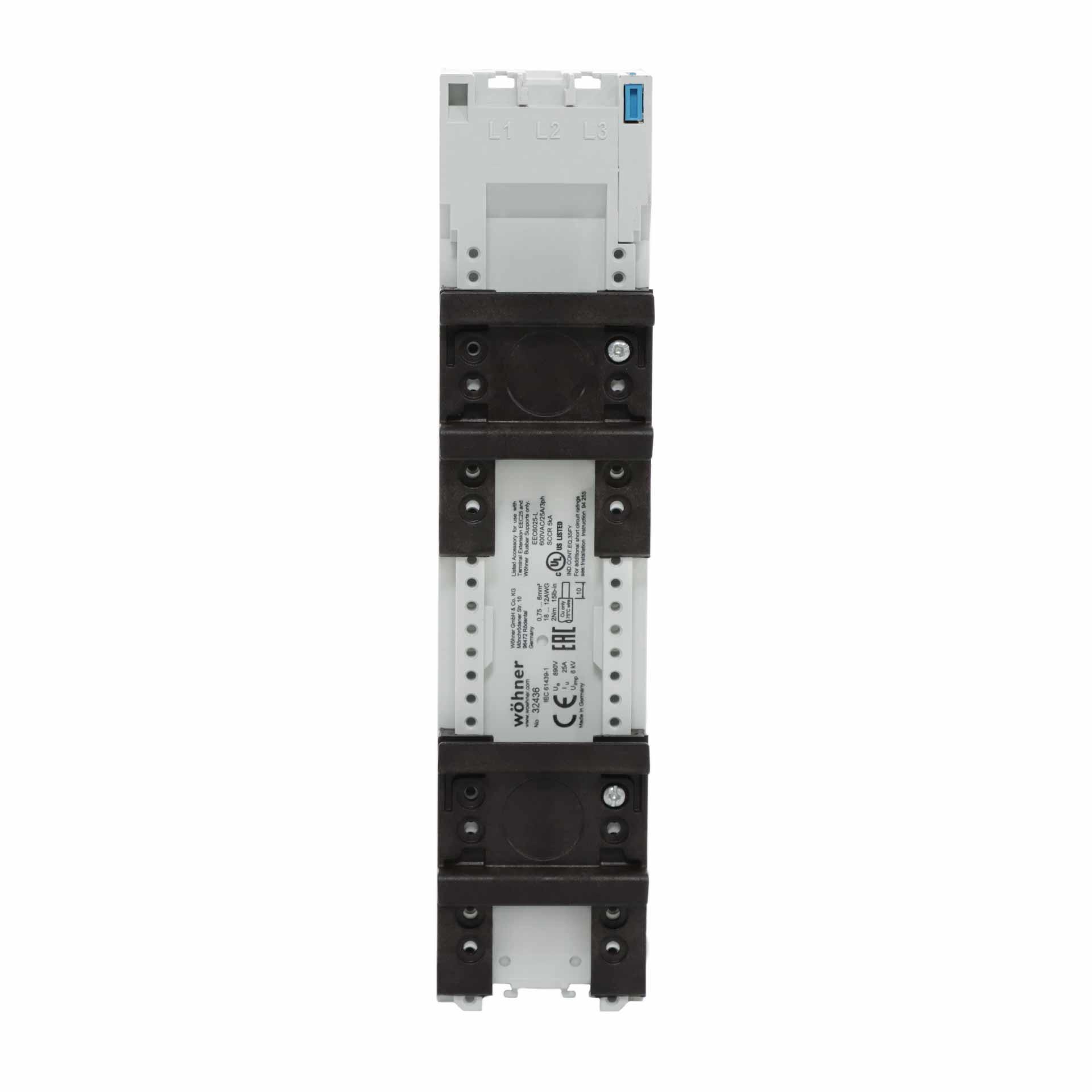 Informations sur les produits "Adaptateur 3P pour jeux de barres 25A, 2x rail DIN, 45x200mm"