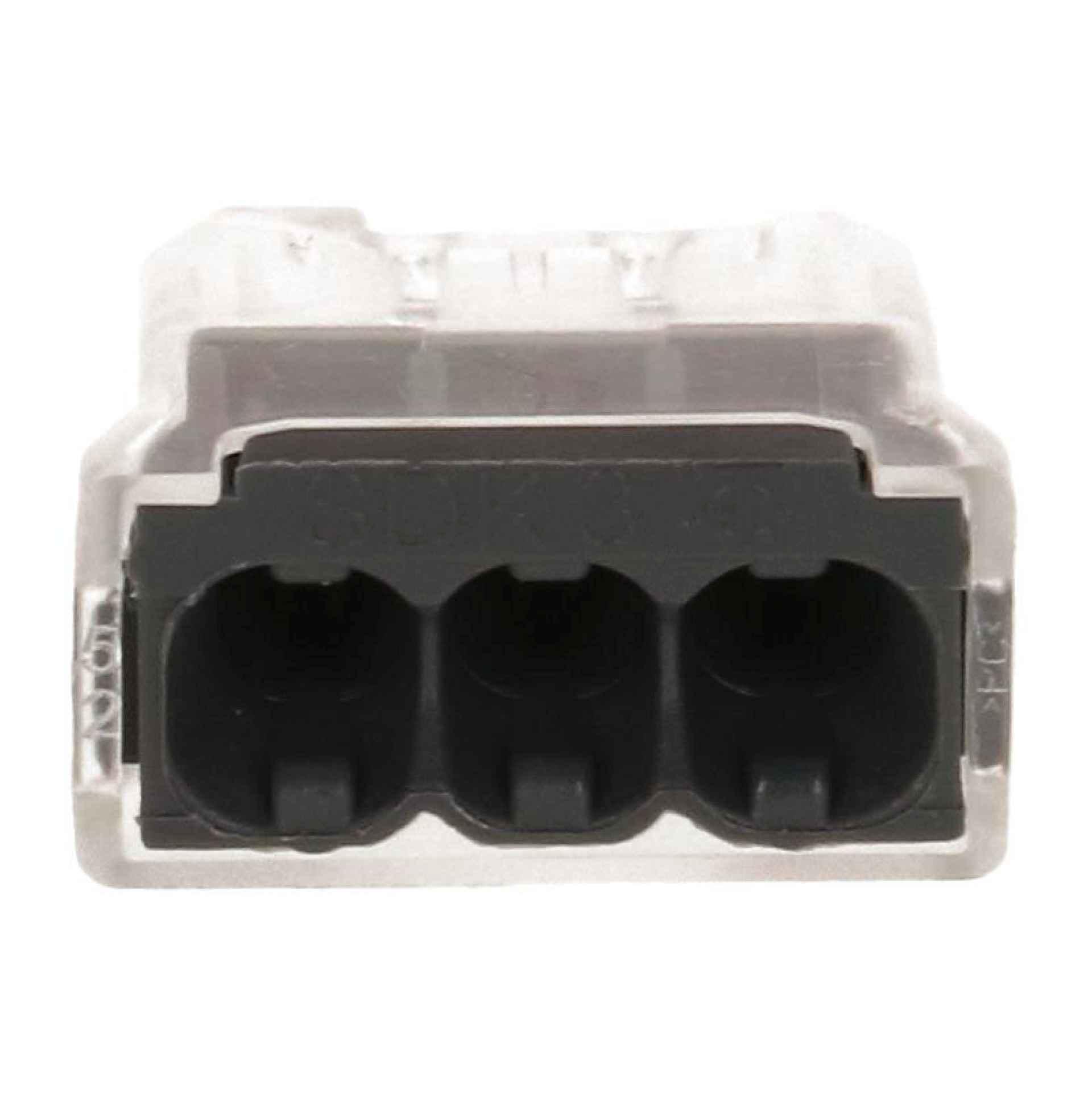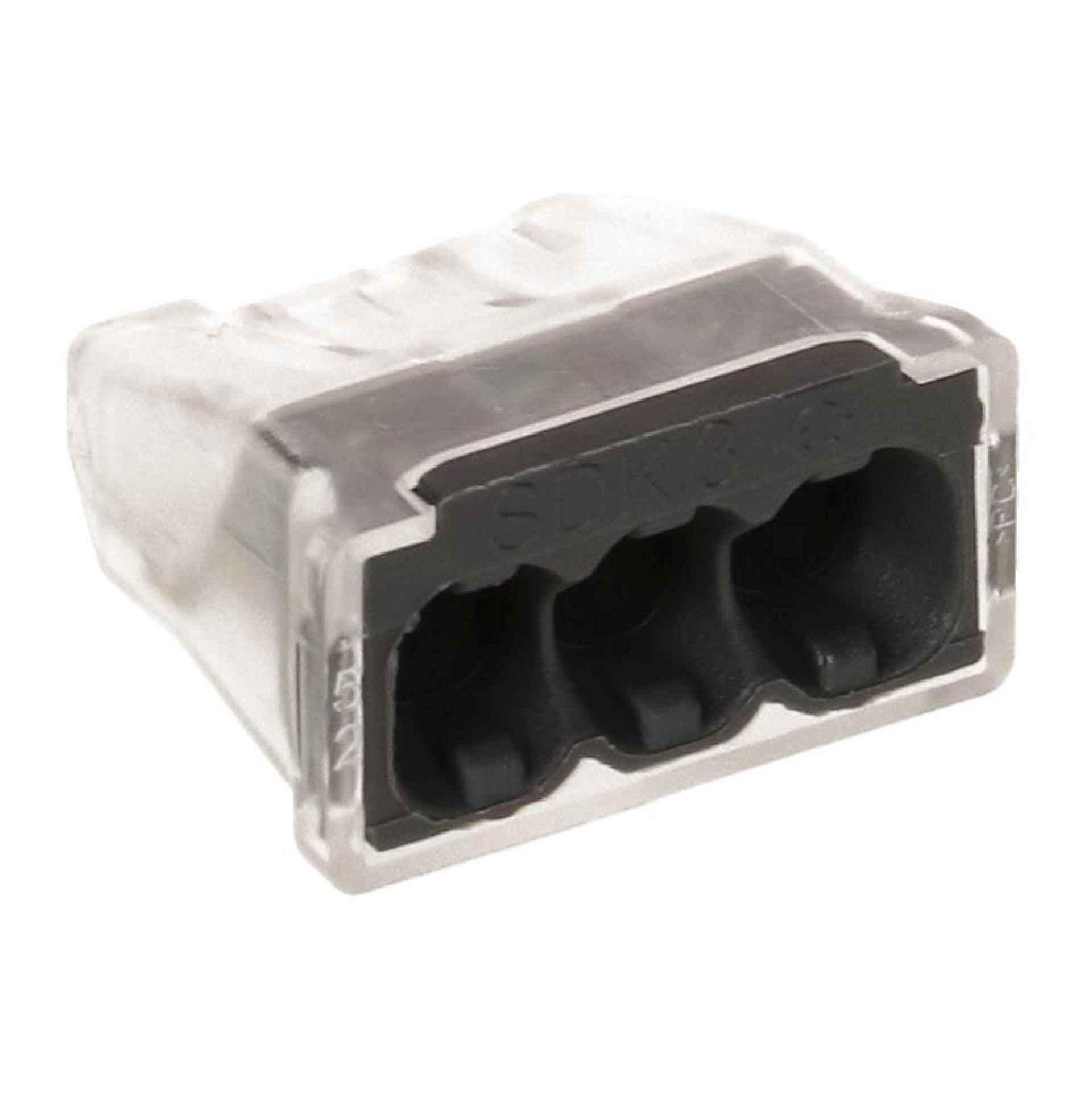 Borne de dérivation sans vis 3 pôles, 0,5-2,5 mm2 / tension: 450 V / ampérage: 24 A / pour conducteur r un fil ou plusieurs fils / couleur: transparent/anthracite