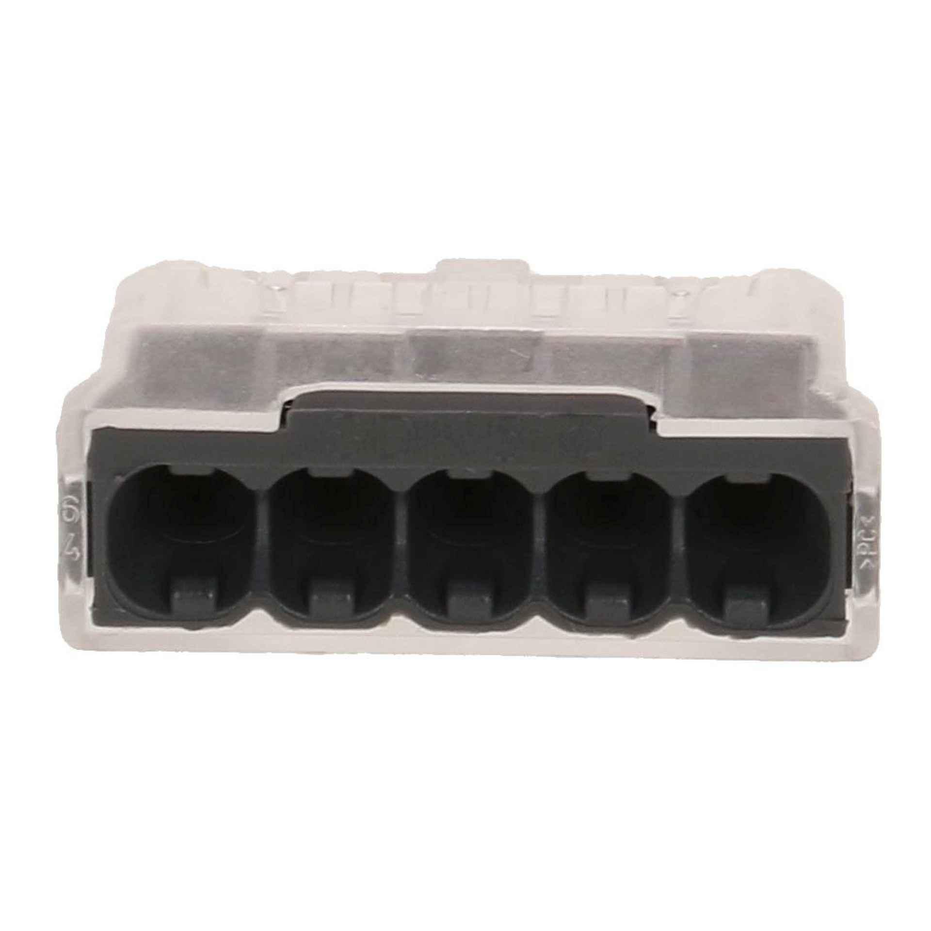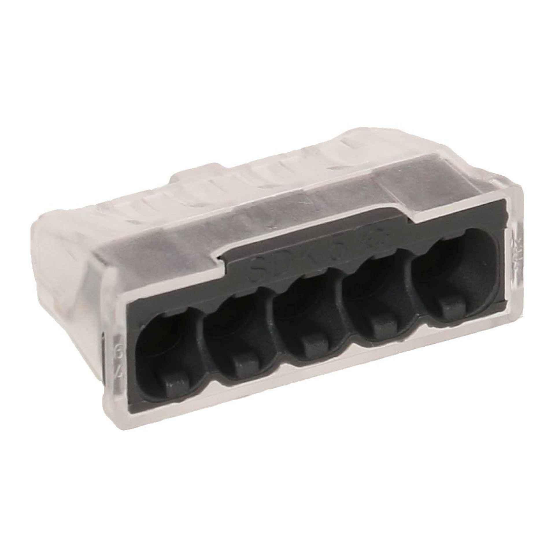 Borne de dérivation sans vis 5 pôles, 0,5-2,5 mm2 / tension: 450 V / ampérage: 24 A / pour conducteur r un fil ou plusieurs fils / couleur: transparent/anthracite