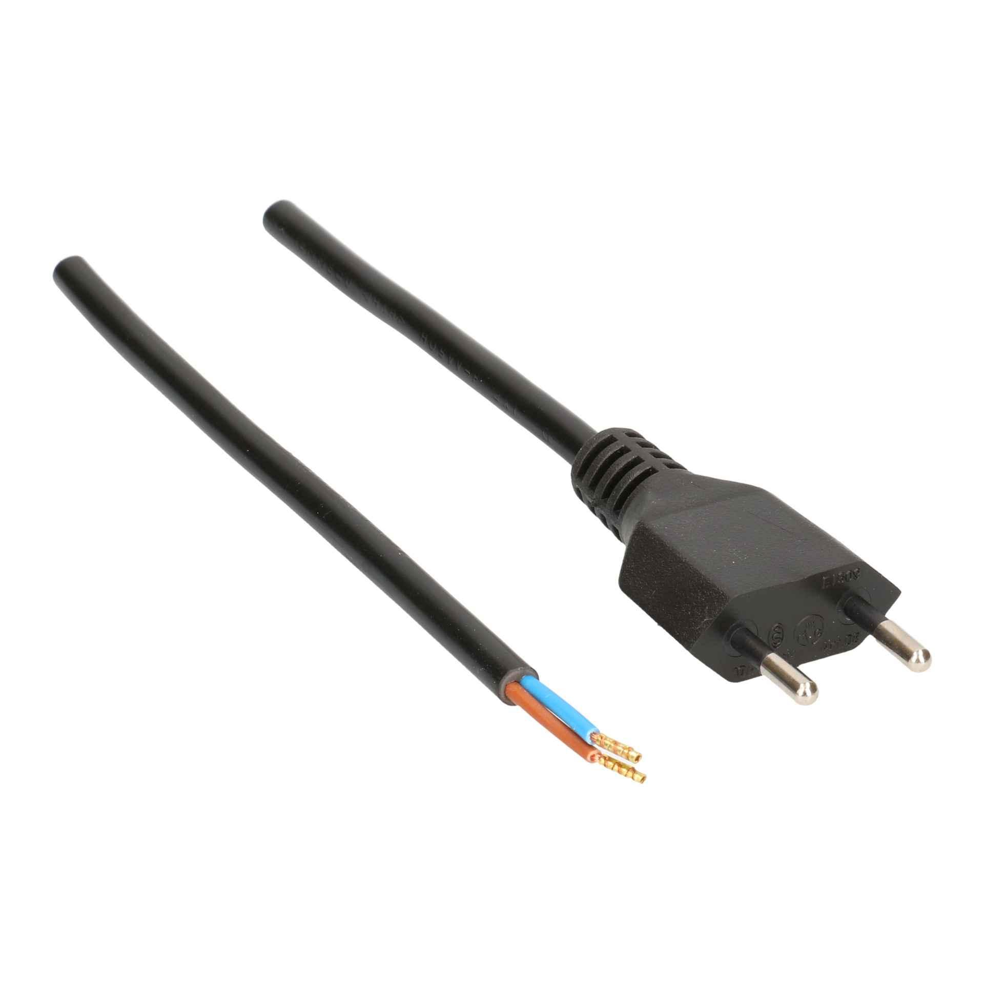 Câble secteur TD H05VV-F2X1.0 5 m, noir / côté 1: fiche type 11 surmoulée / côté 2: dénudé sur 30 mm, avec des cosses tubulaires de 6 mm