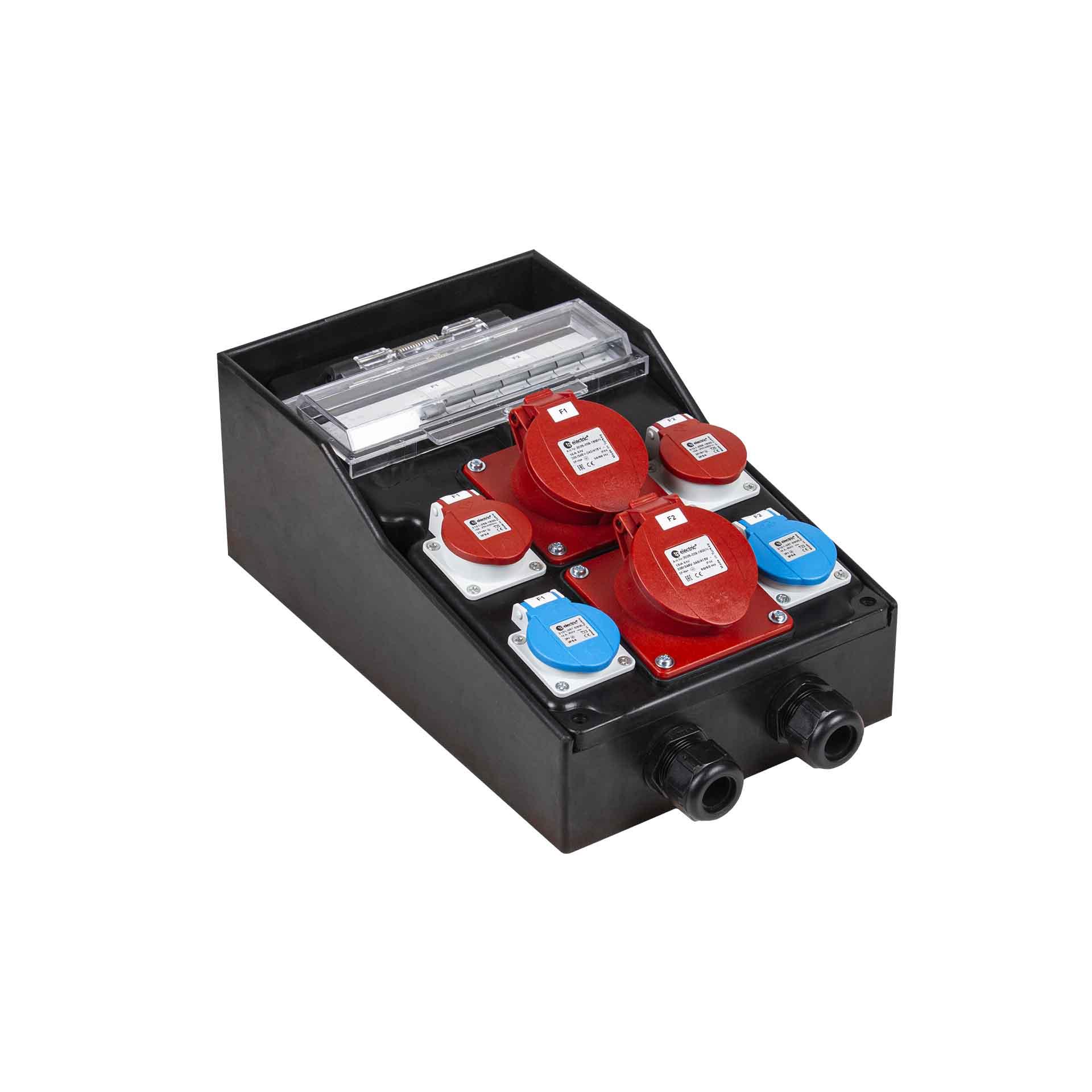 Nos distributeurs de courant en caoutchouc dur peuvent être utilisés autant à l'intérieur qu'à l'extérieur. Industrie, espaces commerciaux, espaces publics, ateliers. Conformes à toutes les dispositions et normes légales actuelles (IEC EN-61439). Les distributeurs peuvent aussi être configurés individuellement et sur demande.
