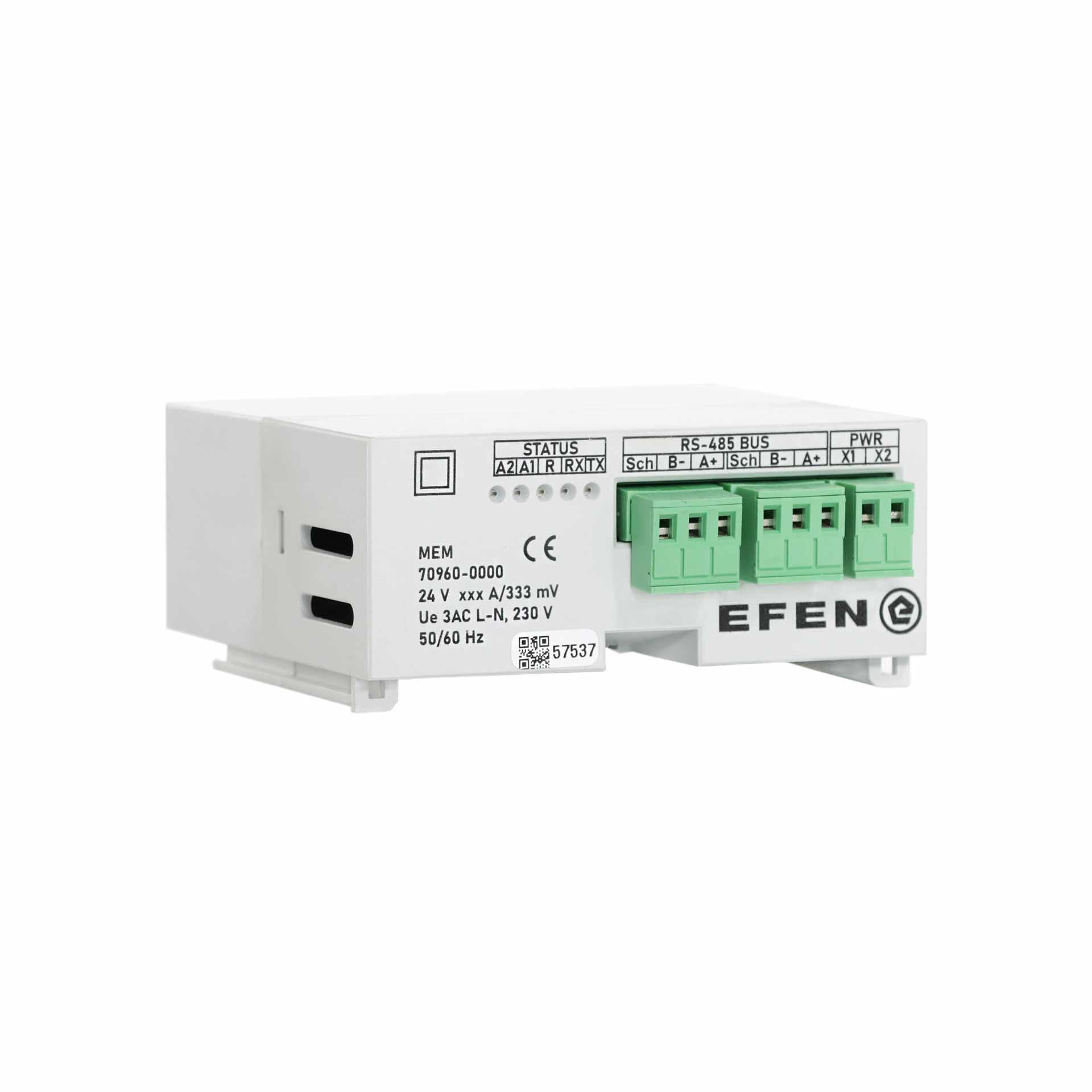 Le MEM 1 est équipé de deux interfaces RS485 qui communiquent via le protocole Modbus RTU. Les connexions se trouvent à l'avant et sont étiquetées « A+ », « B- » et « Sch »