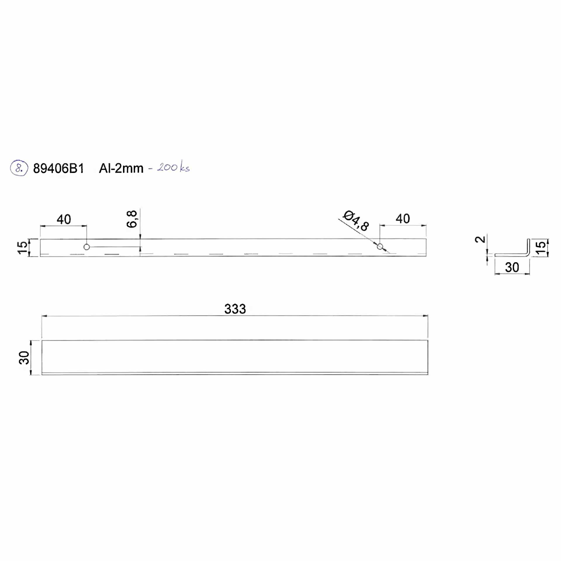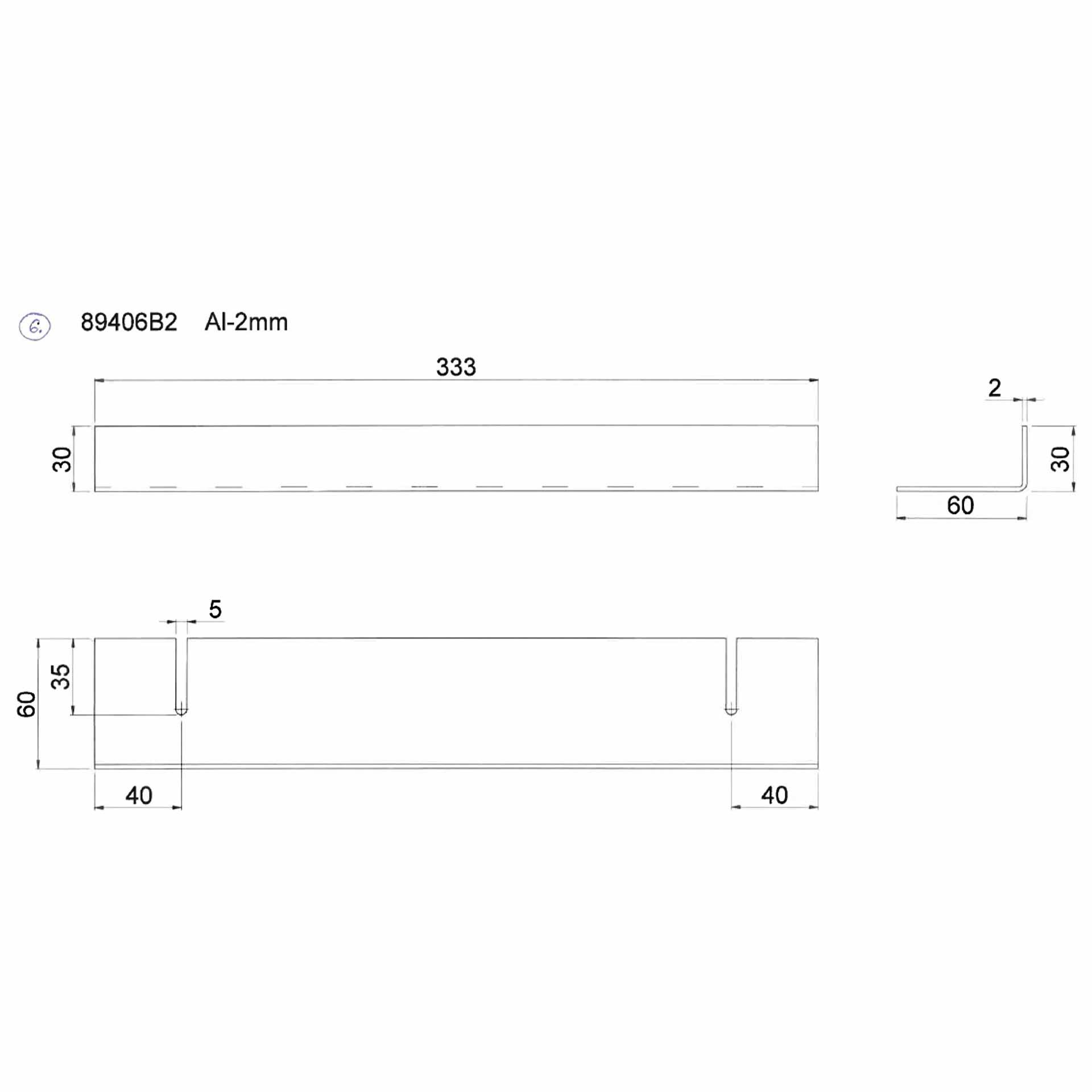 Informations sur les produits "Passe-câbles type B 333mm, équerre avant 15x30x2 mm / arrière 60x30x2 mm, ouverture 312 x 101 mm"