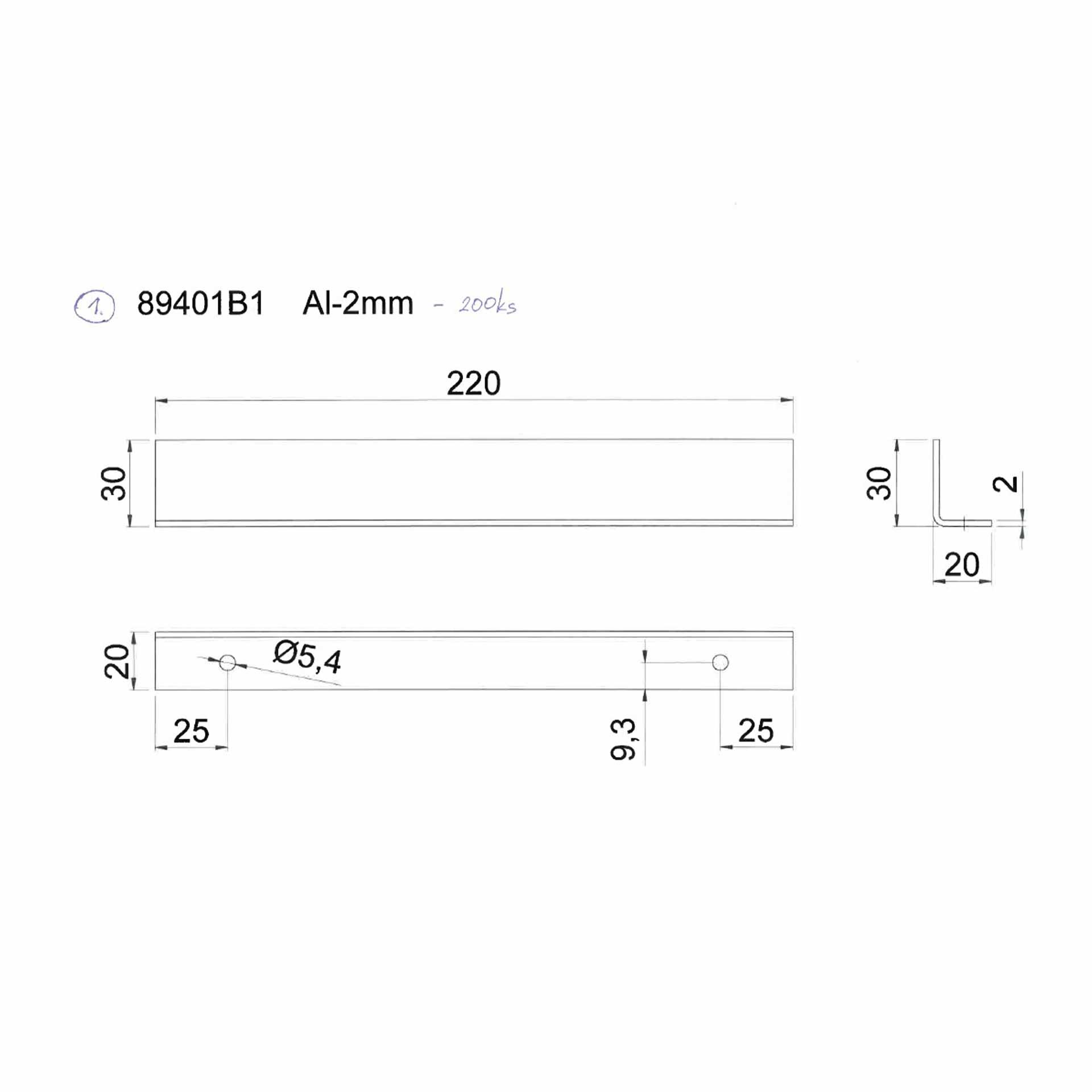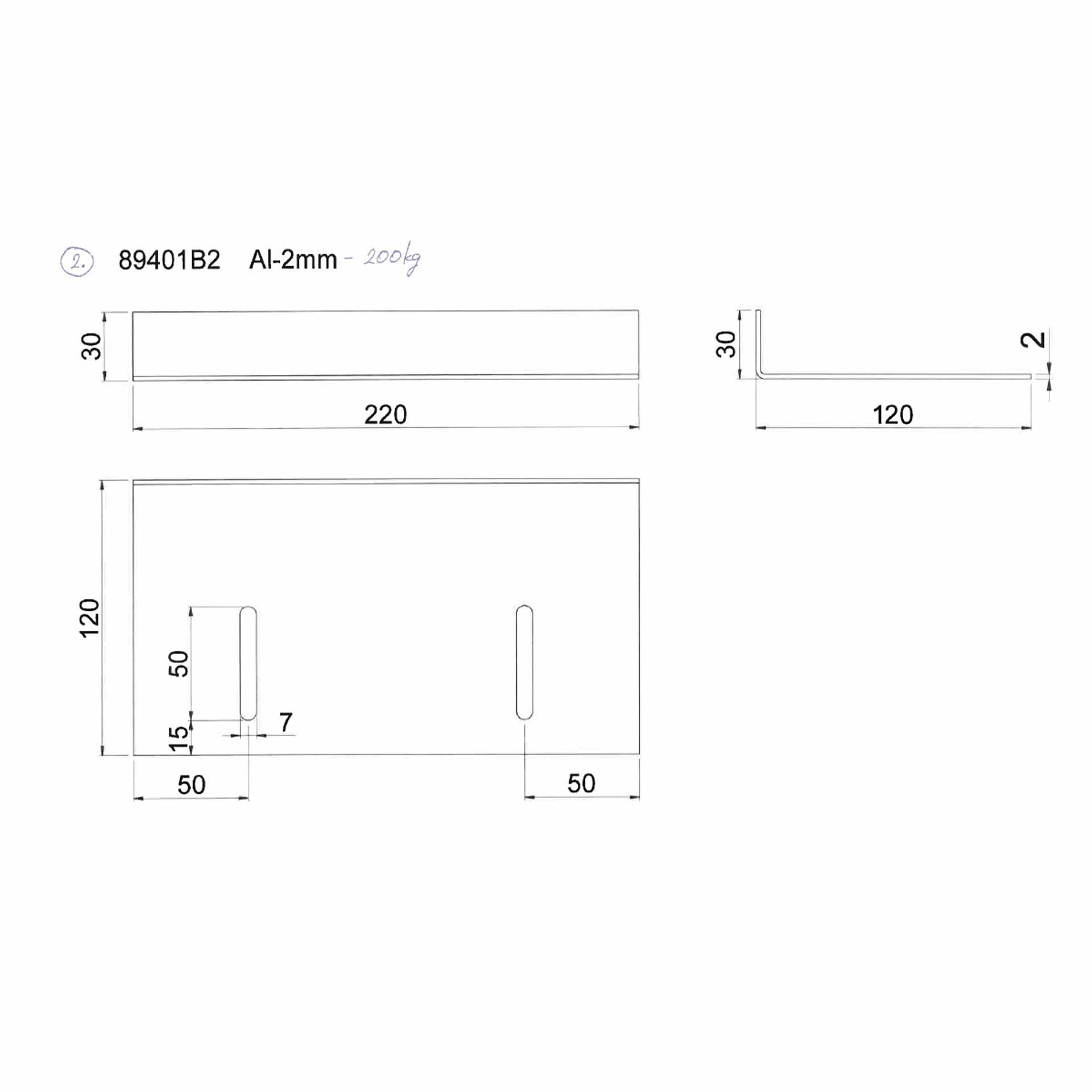 Informations sur les produits "Passe-câbles type standard, largeure 220mm, équerre de devant 20x30x2 mm / de derrière 120x30x2 mm"