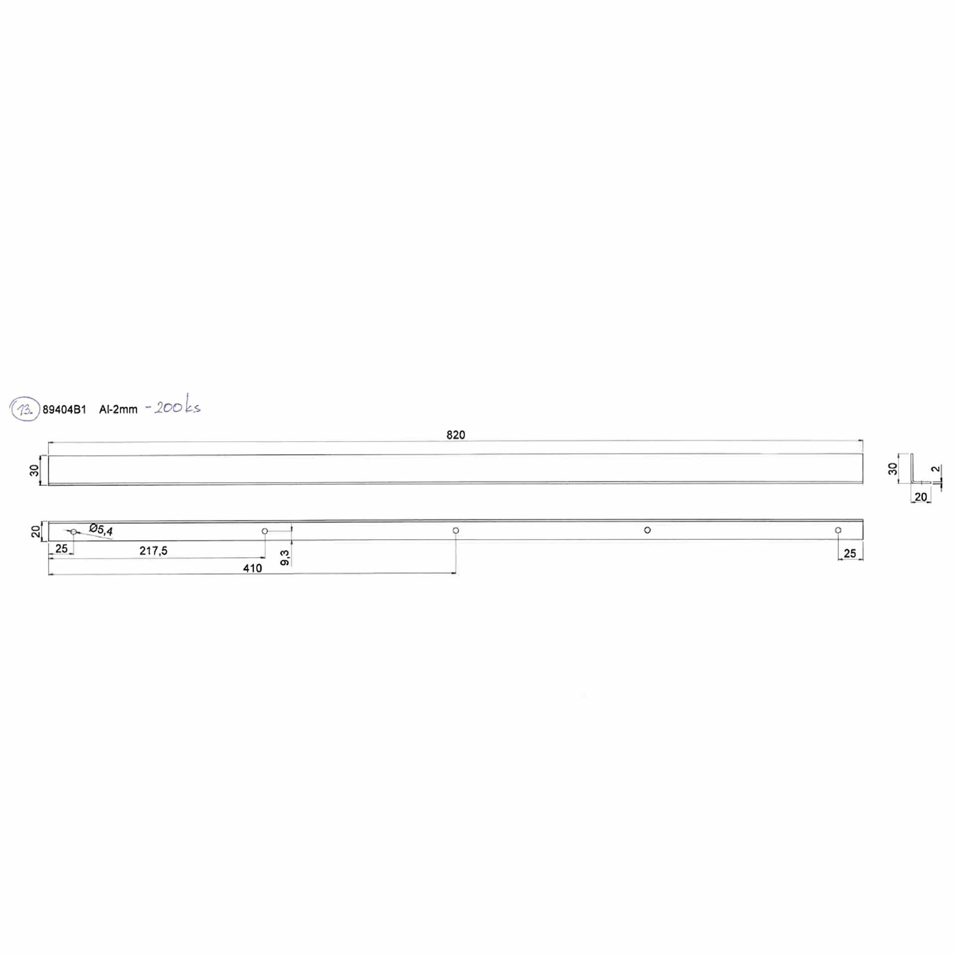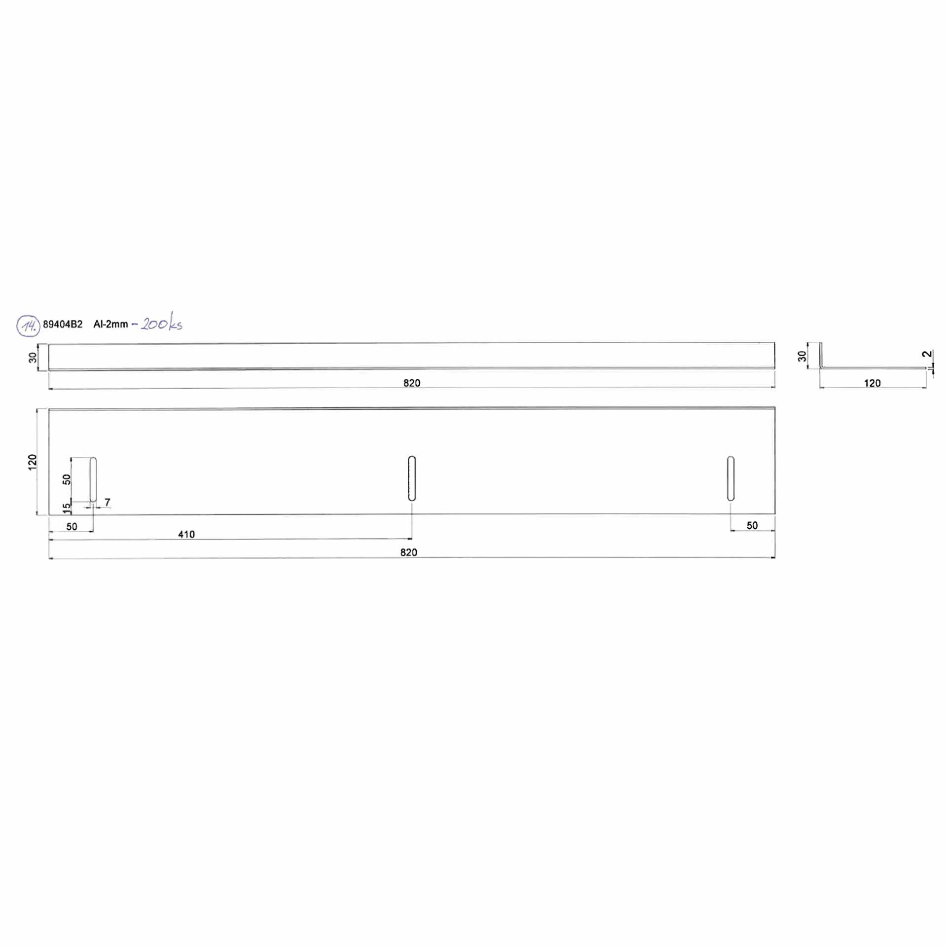 Informations sur les produits "Passe-câbles type standard, largeure 820mm, équerre de devant 20x30x2 mm / de derrière 120x30x2 mm"