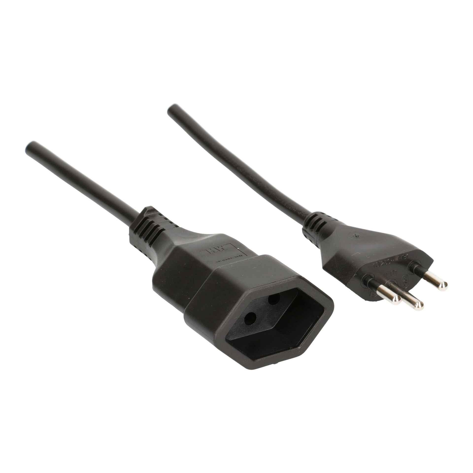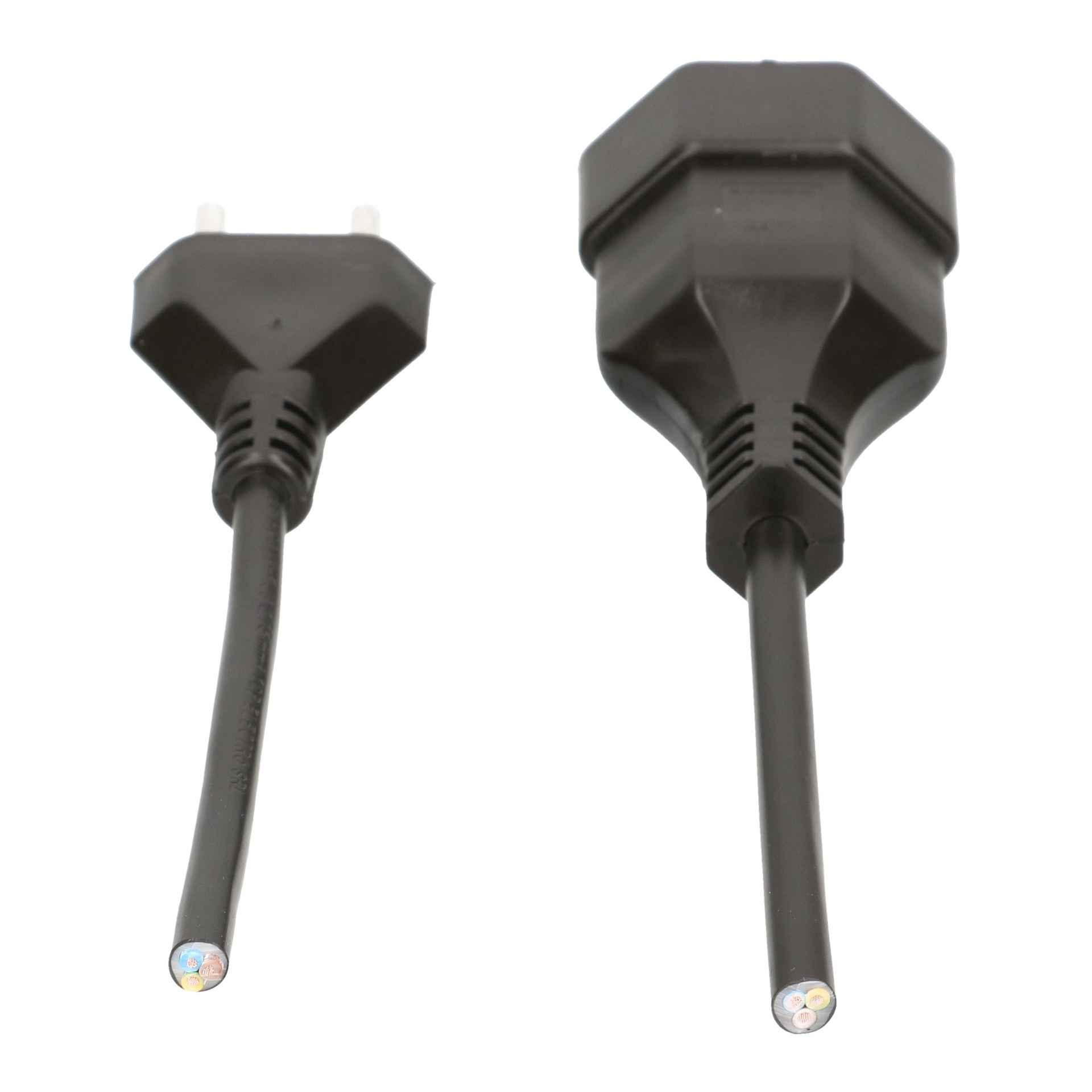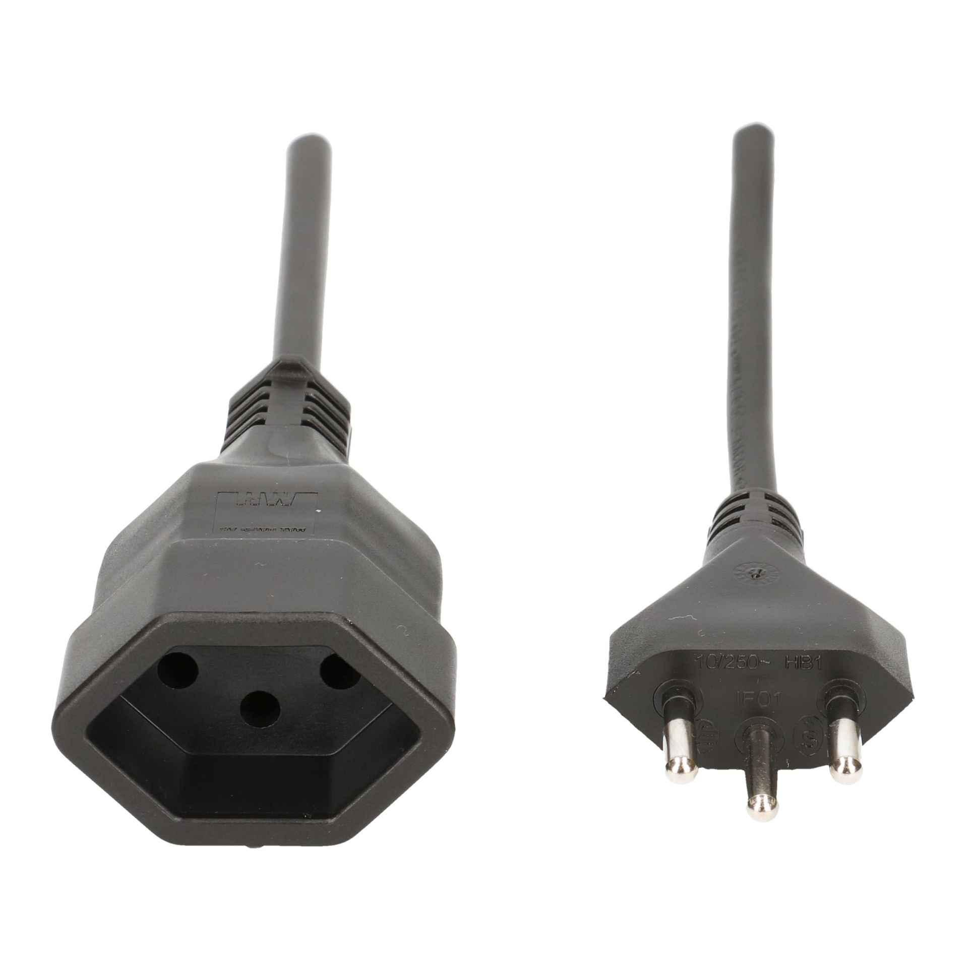 Rallonge TD H05VV-F3G1.0 3 m, noire / côté 1: fiche type 12 surmoulée / côté 2: prise type 13 surmoulée