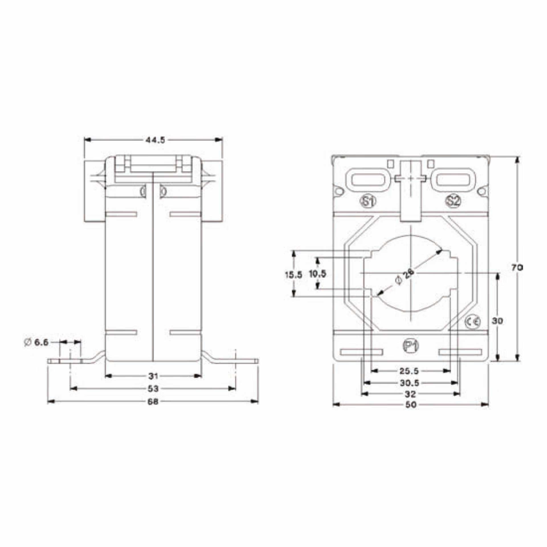 Accessoires pour Transformateur de courant EMCT 31 | 125A, 2.5VA, classe 1, 30 x 10 mm / Ø26mm