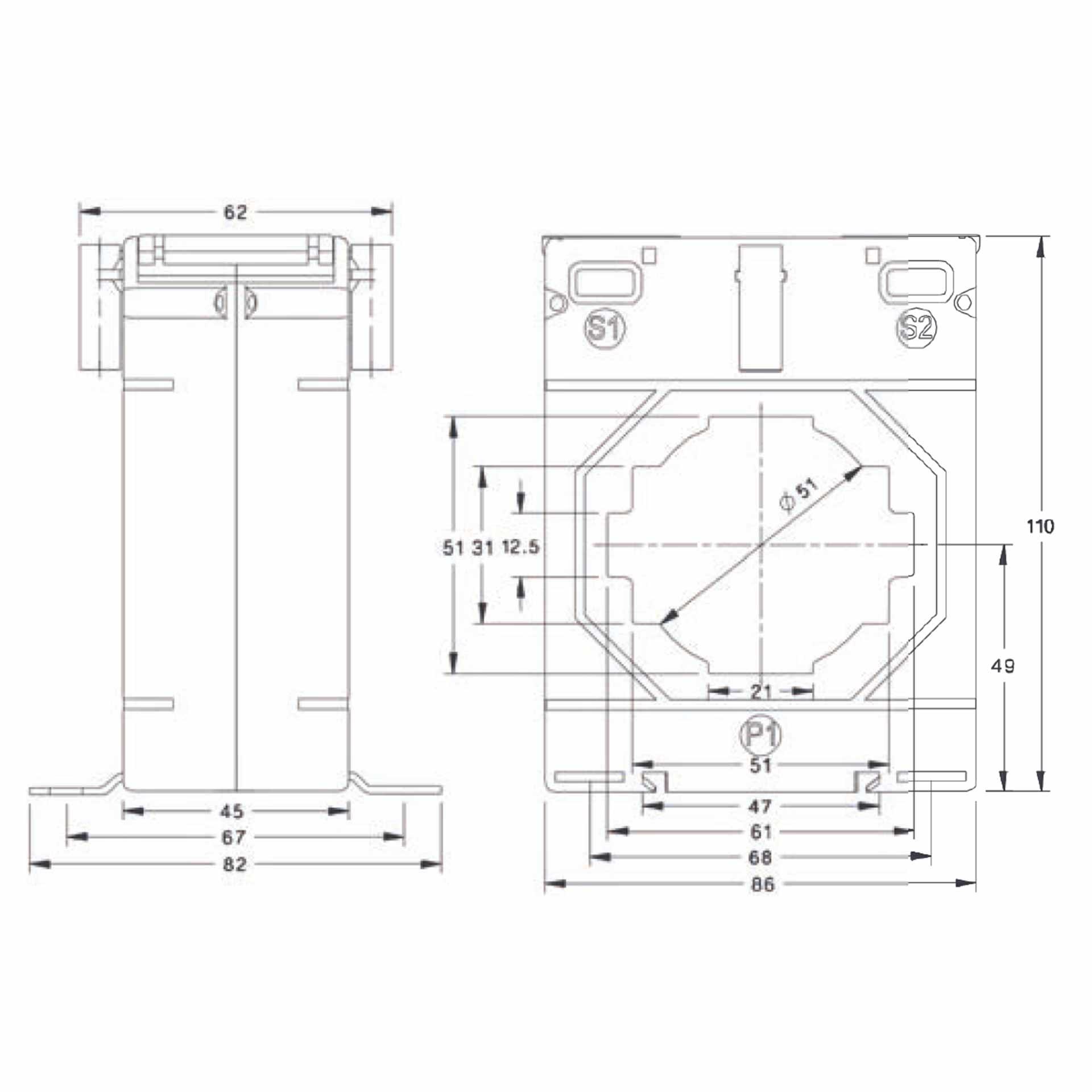 Tab 2 Titre "Transformateur de courant EMCT 61 | 800A, 20.0VA, classe 0.5, 60 x 10 mm / Ø51mm"