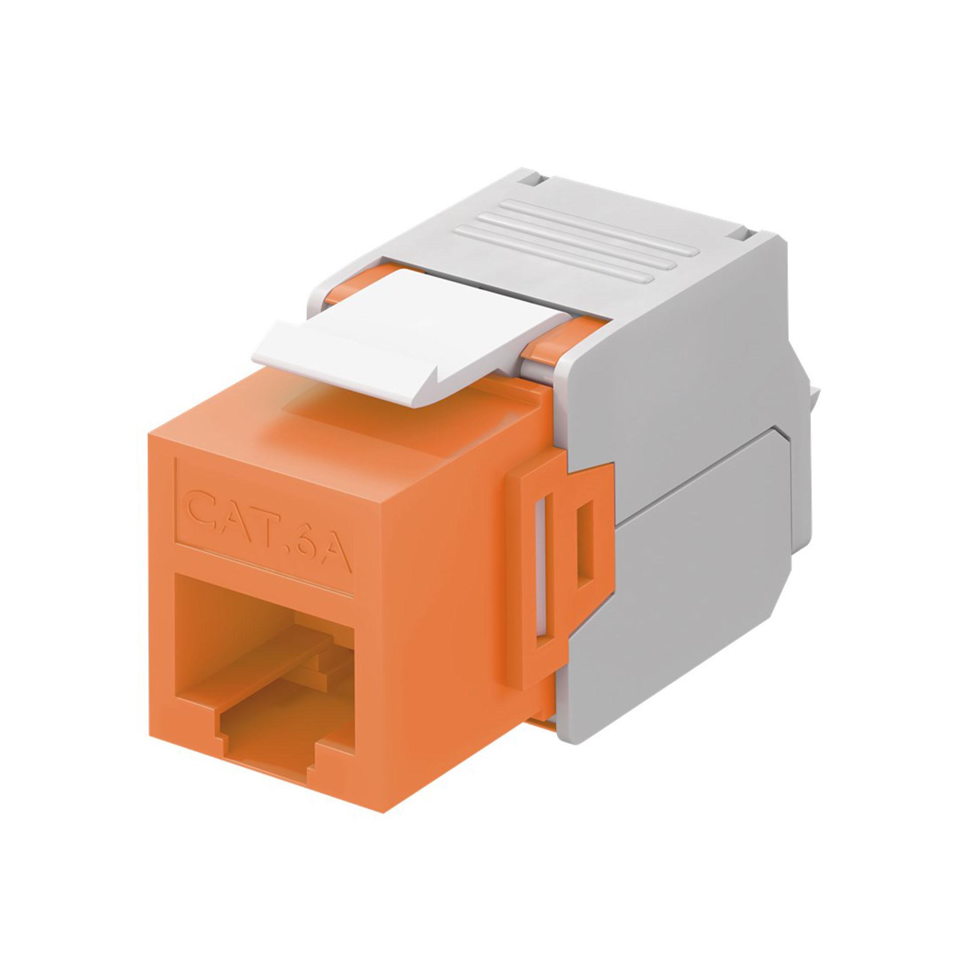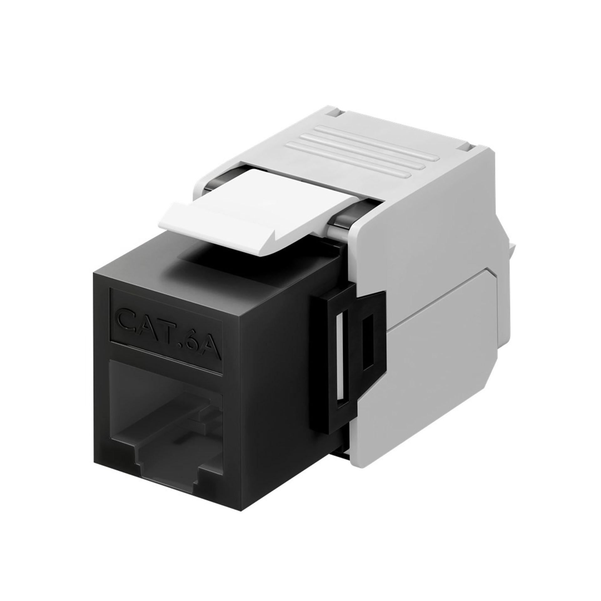 • Presa LAN con robusto alloggiamento in plastica per una trasmissione ottimale dei segnali elettrici • Presa da pannello CAT 6A per cavi di rete con diametro esterno di 5,0 - 9,0 mm • Adatto per Power over Ethernet (PoE+) in conformità a IEEE 802.3at • Presa RJ45 per l'installazione in pannelli patch Keystone, prese di rete e alloggiamenti • Utilizzata principalmente nell'installazione di rete e nell'assemblaggio di cavi di rete installati in modo permanente • Presa RJ45 terminalizzabile in campo per conduttori rigidi con diametro di 0,48 - 0,65 mm (AWG 22 - 26) • Le connessioni RJ45 sono codificate a colori TIA 568A/B