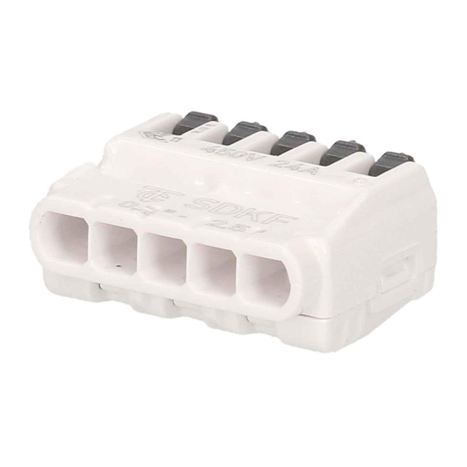 Morsetto di collegamento senza viti SDKF 5 / 5 poli / 0,2-2,5mm2 / con leve di comando / bianco-antracite / 24A-450V