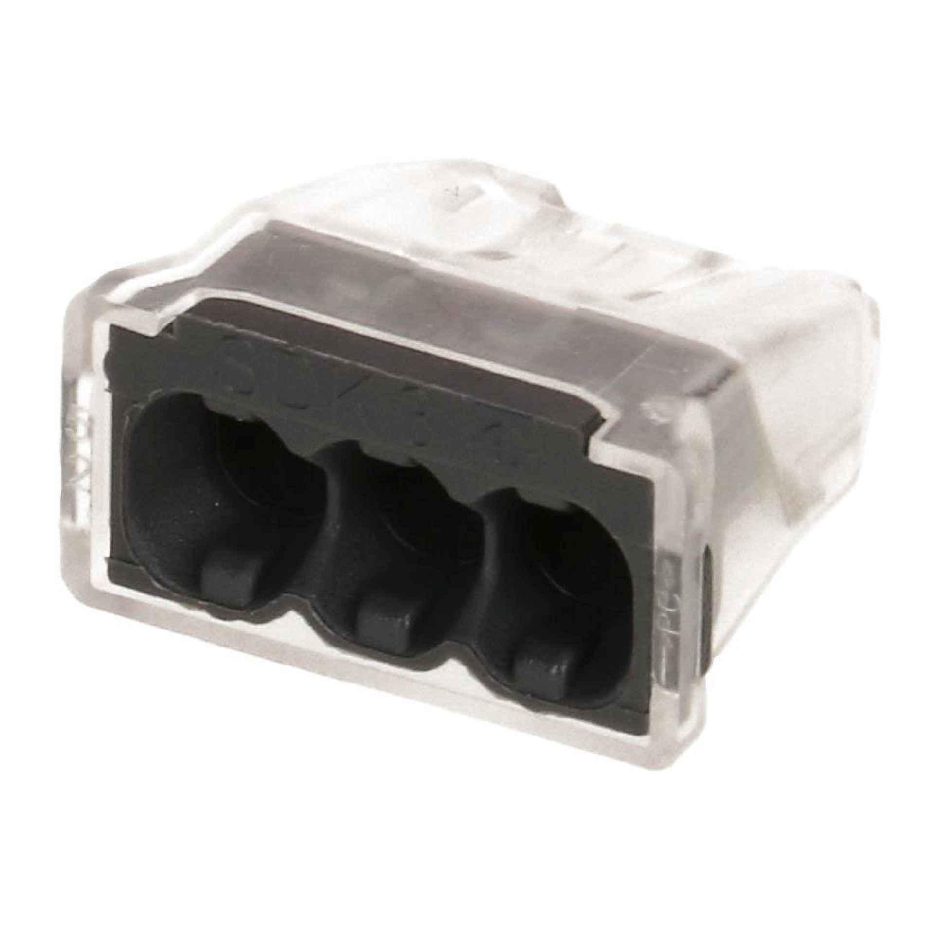 Morsetto a scatola senza viti a 3 poli, 0,5-2,5 mm2 / Tensione: 450 V / Ampere: 24 A / per conduttori rigidi e a trefoli / Colore: trasparente/antracite