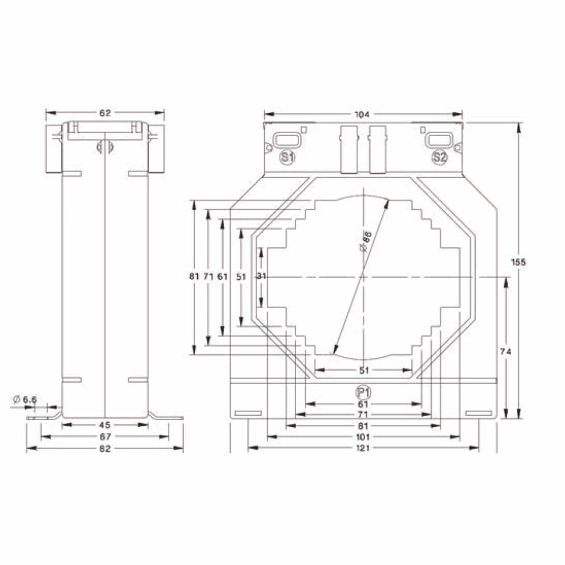 Technische Daten "Stromwandler EMCT 101 | 2000A, 45.0VA, Klasse 0.5, 2x 100 x 10 mm / Ø86mm"